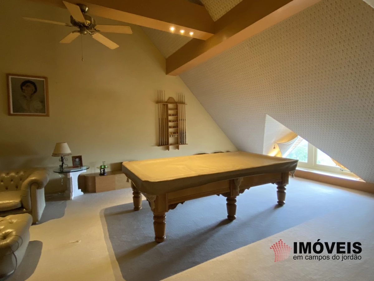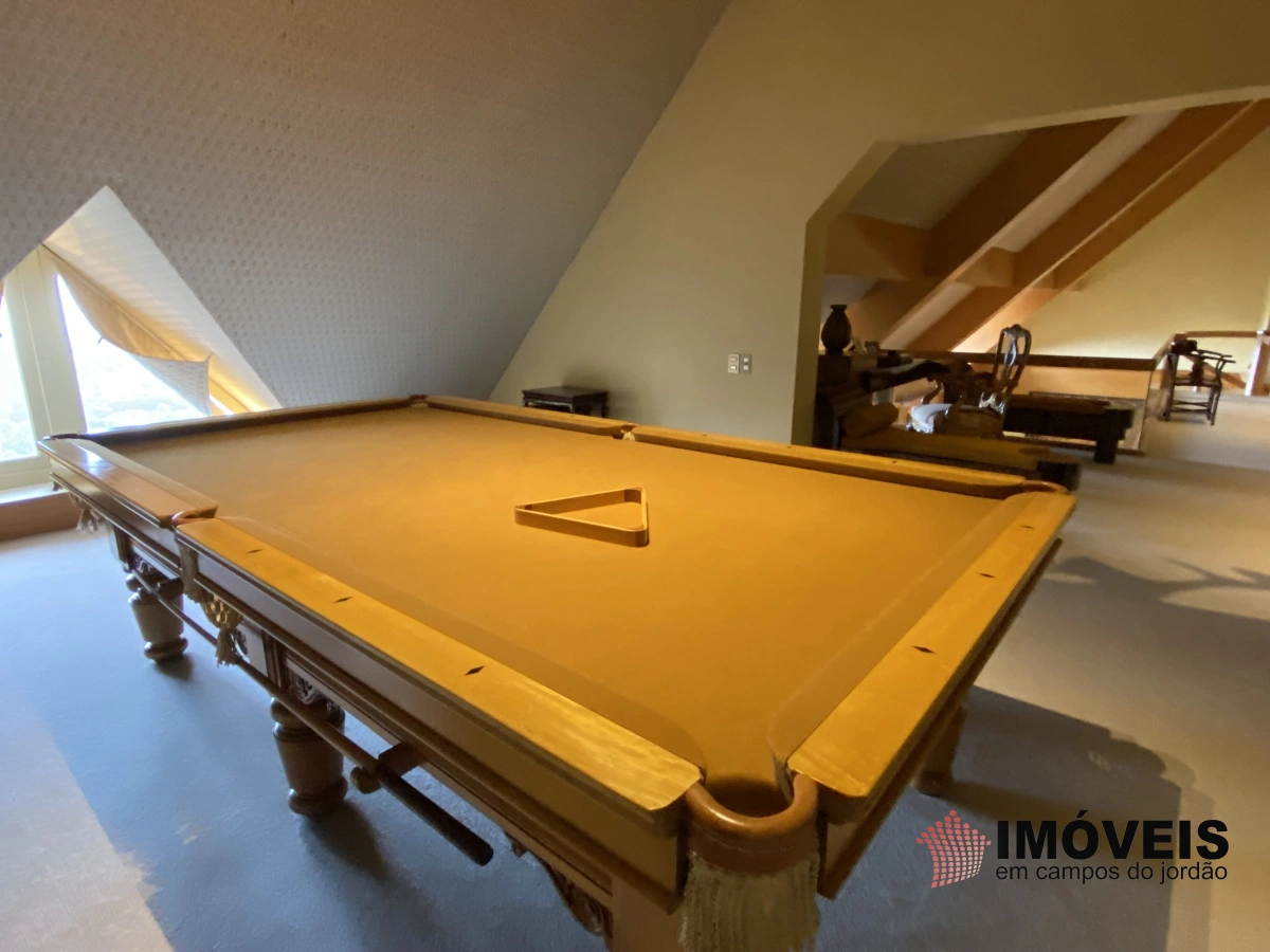No piso superior amplo living, sauna seca, bar, Home Theater e sala de jogos com mesa de bilhar.