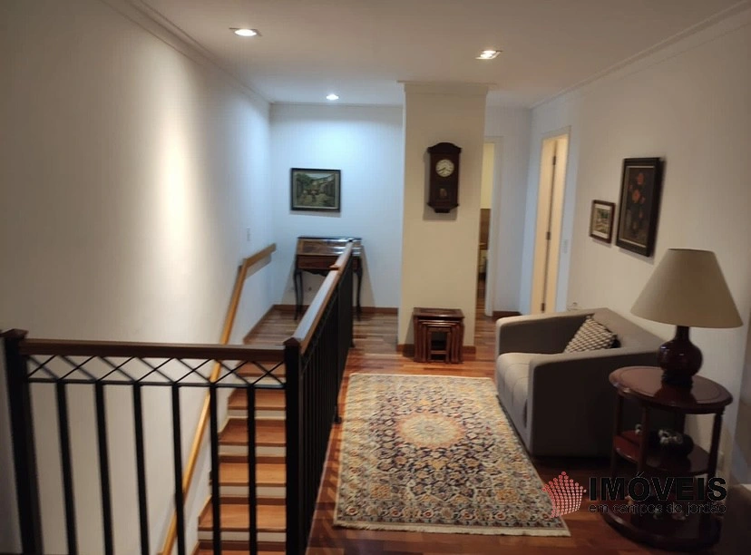 No primeiro andar: 01 suíte, sala de estar com lareira, sala de jantar, sala de TV, cozinha, área de serviço, lavabo
