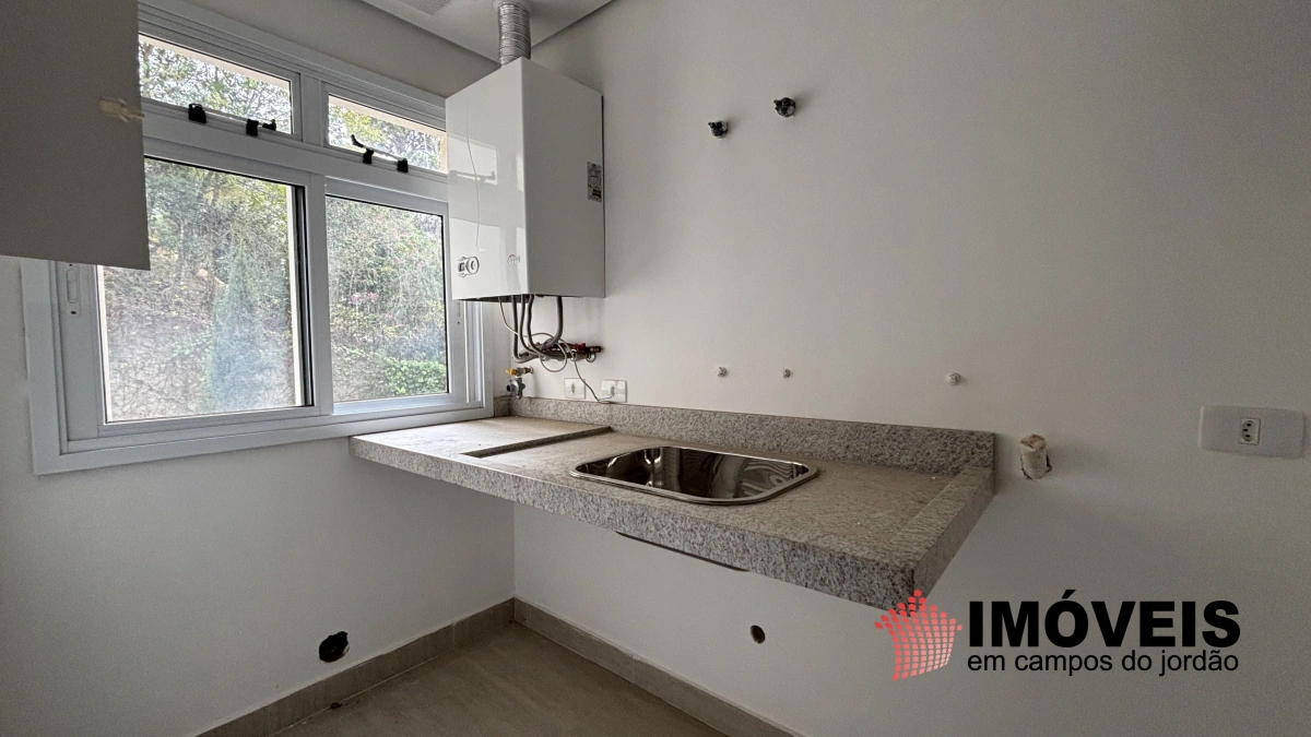A varanda é um verdadeiro convite ao lazer, com pia de apoio, guarda-corpo em vidro e espaço para instalar churrasqueira ou forno de pizza perfeita para curtir o clima serrano.