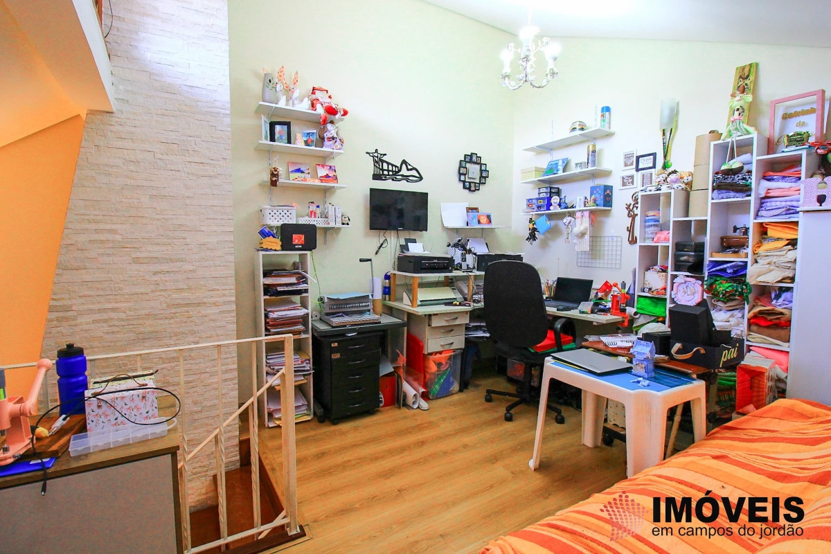 No andar superior um mezanino com escritório, 02 suítes com armários embutidos sendo uma com banheira de hidromassagem e 02 vagas de garagem.