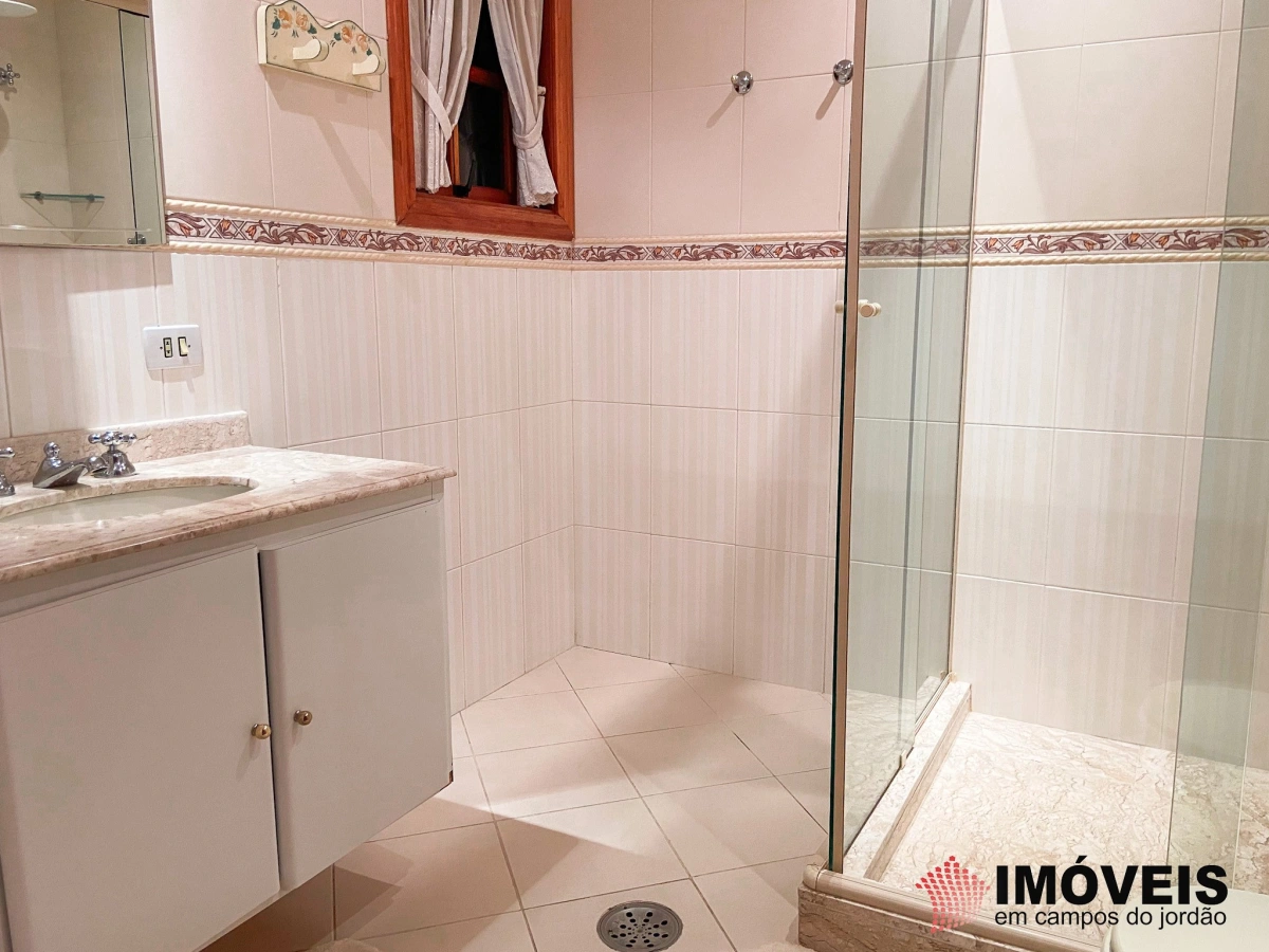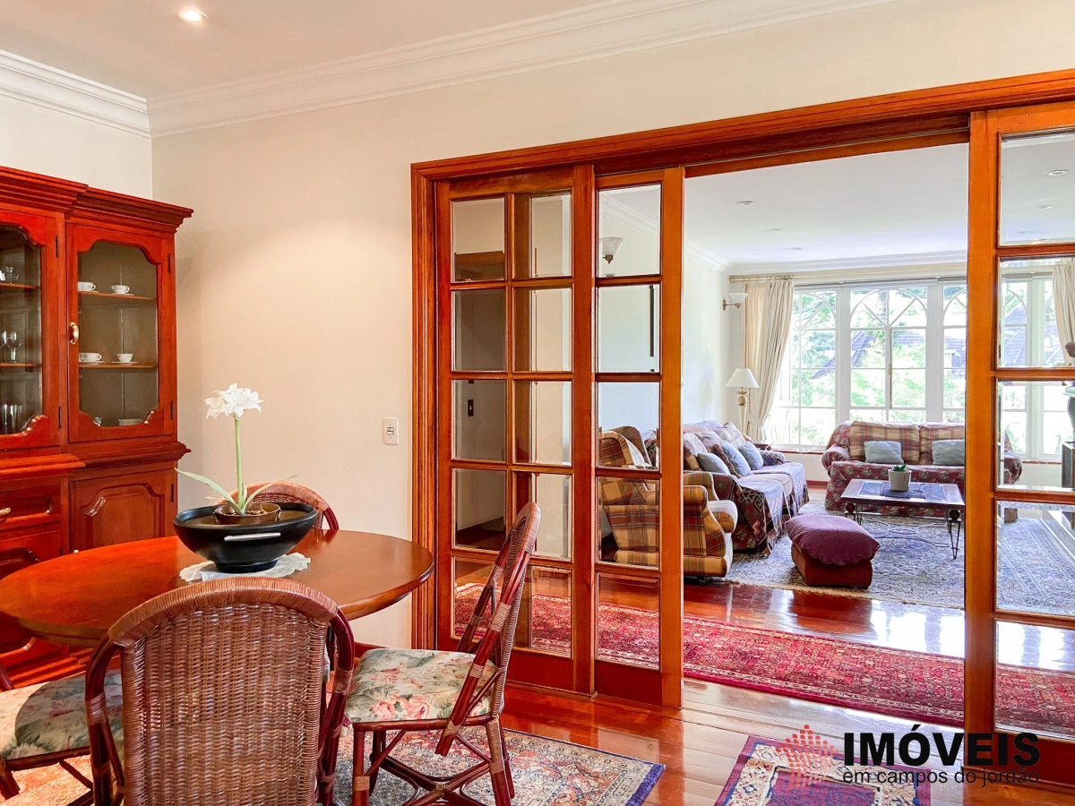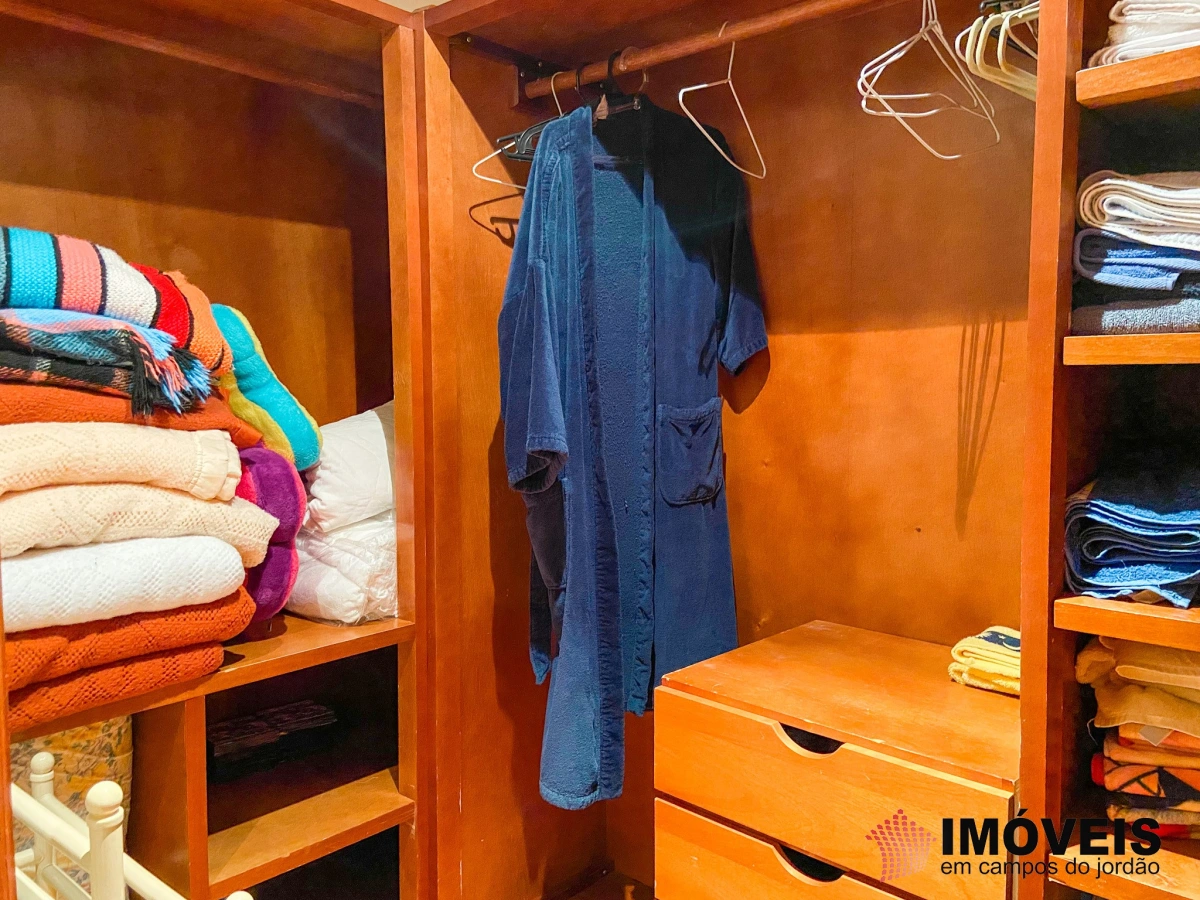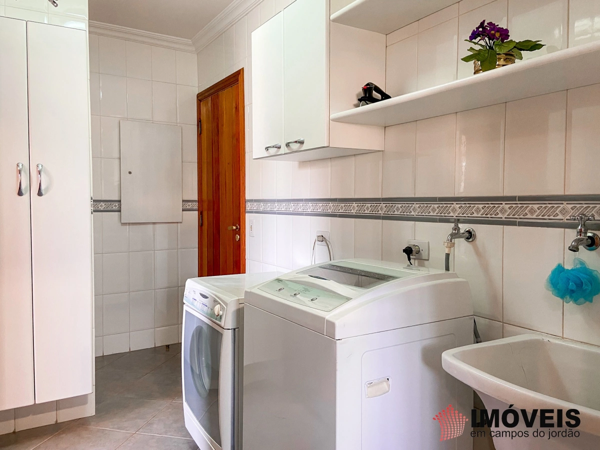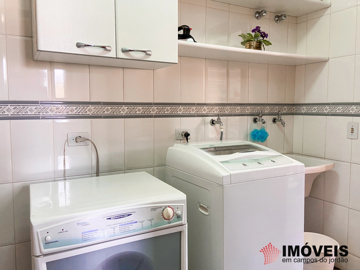 Tudo muito amplo e bem iluminado, sala de estar com lareira, cantinho de leitura e outro de bebidas, sala de jantar com louças de primeira qualidade, sala de chá com vista para o teleférico, cozinha completa, lavanderia, suíte de empregada, suíte máster com closet, lavabo, cantinho da costura, 02 suítes com duas camas de solteiro cada e varanda e 02 vagas de garagem demarcadas.