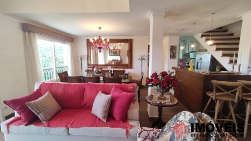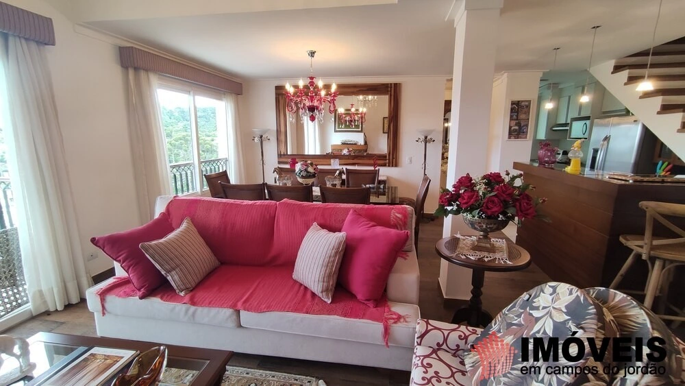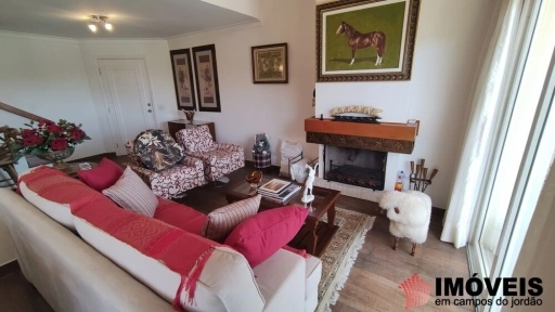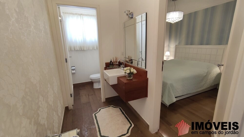Sala de estar com lareira e sacada, sala de jantar, cozinha, lavanderia. E no piso térreo mesmo uma maravilhosa suíte mais lavabo.