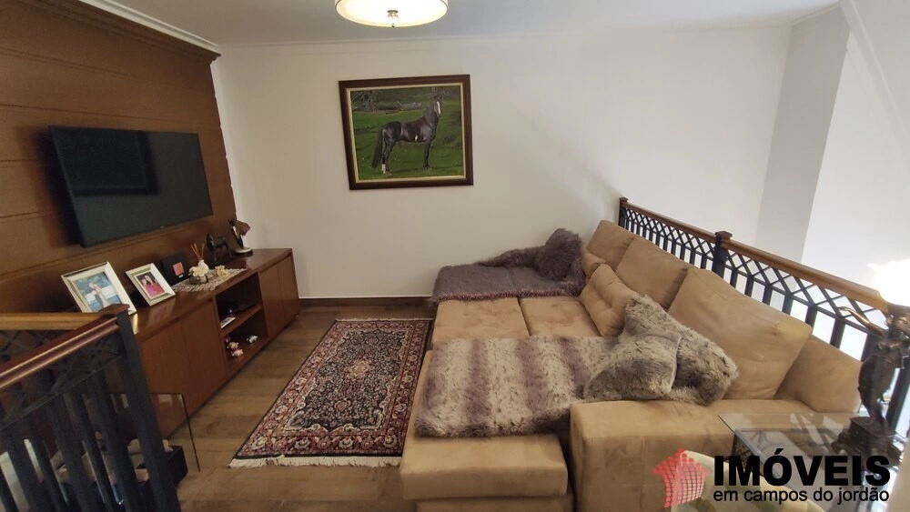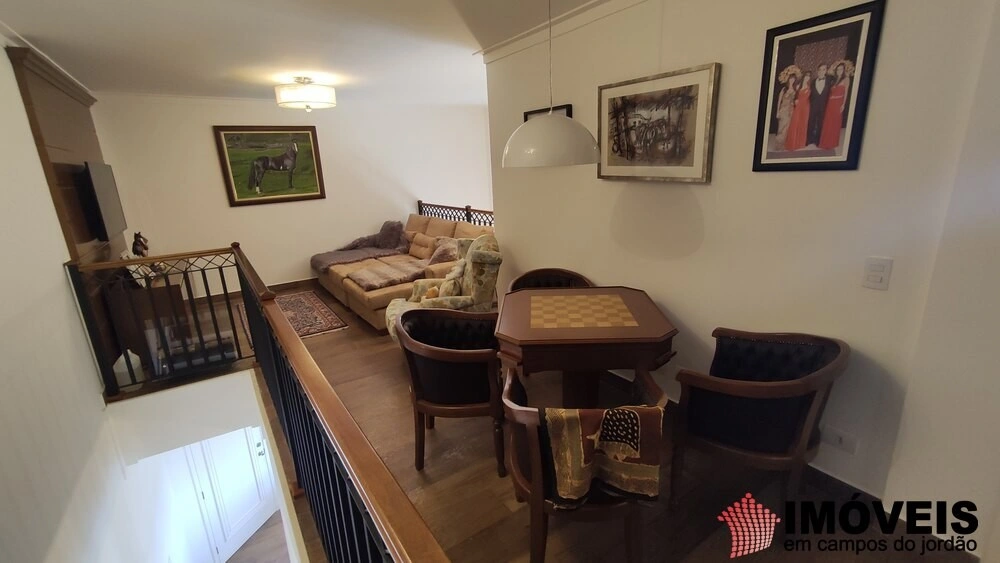Mezanino com sala de TV, espaço para jogos com mesa de carteado e cantinho do café. Duas suítes sendo uma com cama de casal e a outra com duas camas de solteiro.