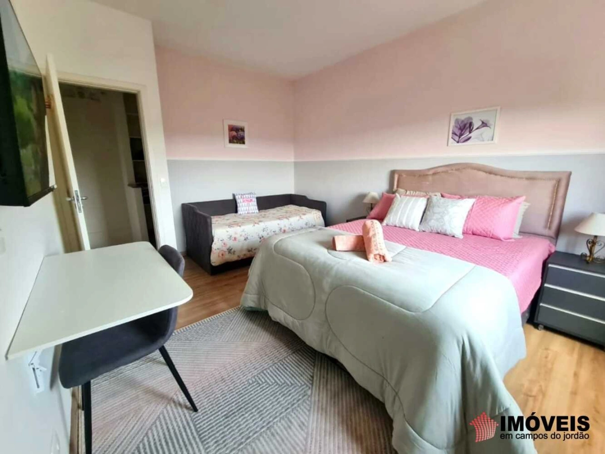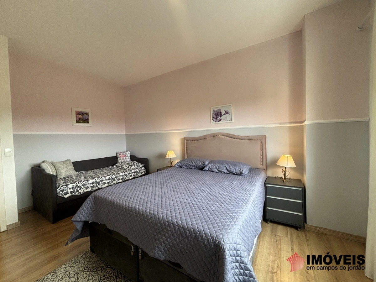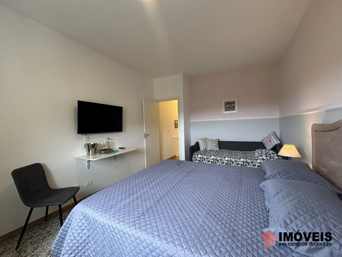 Todo mobiliado, com ótima distribuição dos espaços. Cozinha com planejados de ótima qualidade, área de serviço para facilitar o dia a dia e a sala de estar e TV com lareira é um encanto e se estende para a varanda envidraçada com uma vista arrebatadora para a natureza de Campos do Jordão.