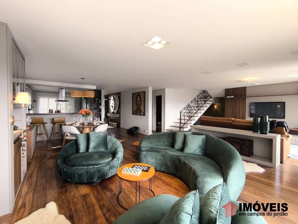Os ambientes de salas se conectam, hall de entrada, um lavabo bem decorado, sala de estar com lareira, sala de jantar, sala de TV, espaço para vinhos, tudo isso avarandado e a cozinha completa com uma ilha magnifica é perfeita para os amantes da culinária.