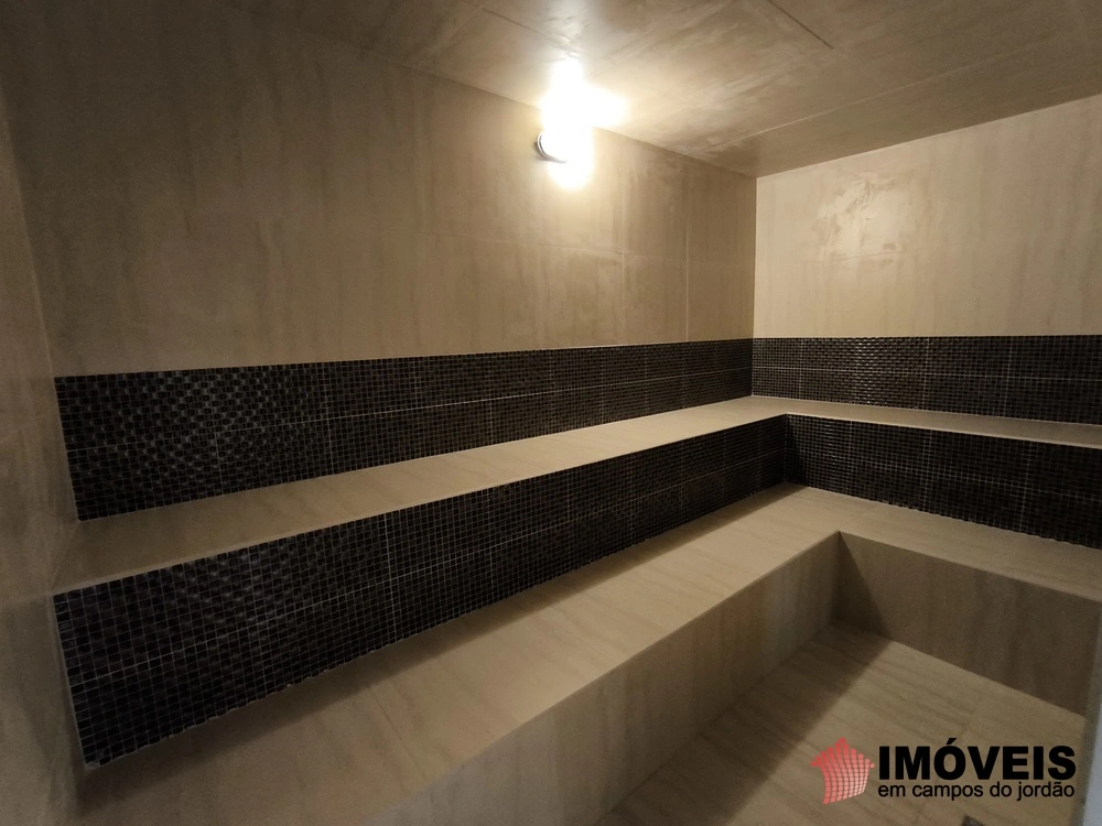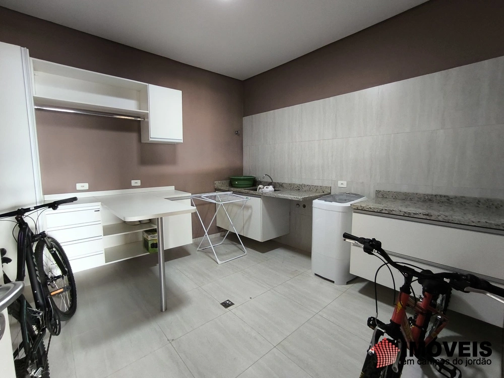 No pavimento a baixo: Sauna úmida, banheiro, lavanderia completa, bar, espaço gourmet com churrasqueira, forno de pizza, forno caipira, fogão a lenha e uma mesa grande para reunir toda a sua família. Ainda nesse espaço tem cantinho do café, cantinho de bebidas quentes, espaço para rede e uma sala de TV para receber seus amigos.