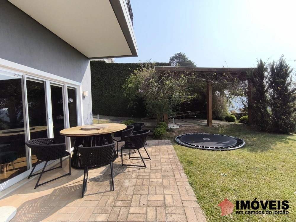 O jardim é um espetáculo a parte, com uma vista fabulosa, pergolado coberto com vidro e jacuzzi de 8 lugares, balanços, cama elástica, mesa e cadeiras e árvores frutíferas.