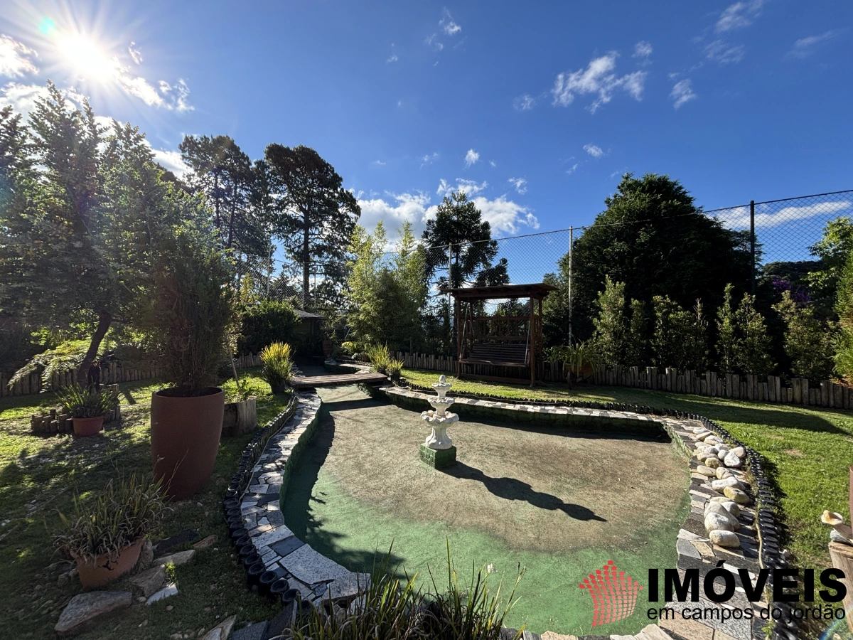 Um jardim incrível com pergolado, vários balanços e lago, um espaço ideal para você relaxar com sua família e também seus pets correm alegremente em um local amplo, inclusive por já possuir toda a tela e medidas específicas, nesse local é possível fazer uma quadra de tênis.