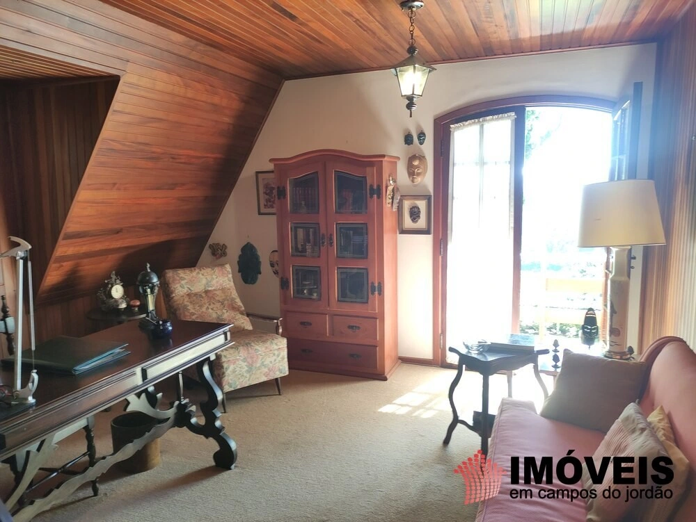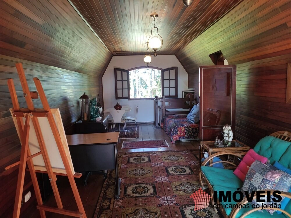 No andar superior, escritório, armário no corredor e 02 suítes, sendo 01 com closet, banheira e uma vista espetacular para a Pedra do Baú. Mais acima, no sótão, um ateliê com banheiro, que também pode ser transformado como suíte. O sótão também possui uma vista perfeita para a Pedra do Baú.