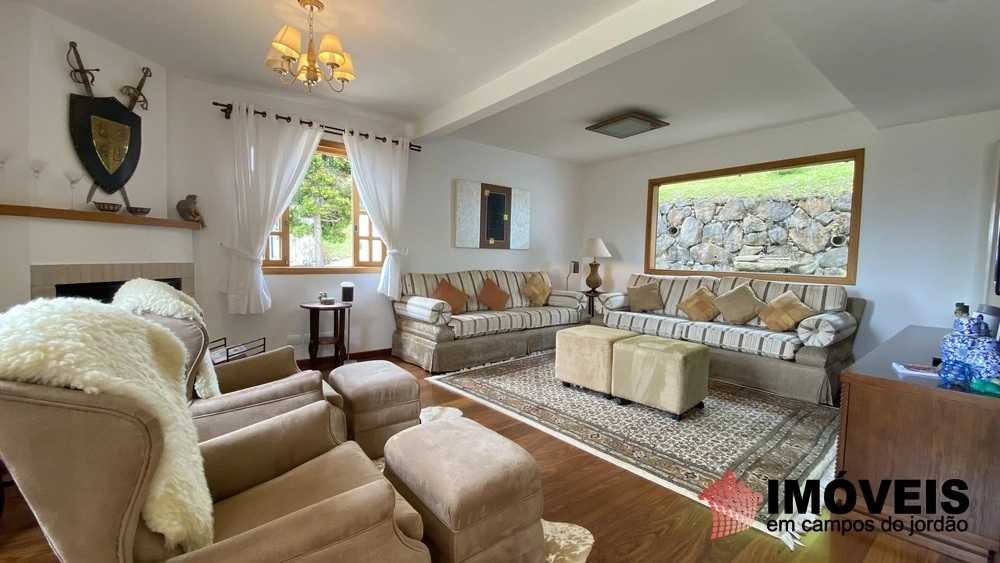 Com seus interiores bem projetados e mobiliados, esta residência oferece todo o conforto e estilo que você deseja. Os espaçosos ambientes incluem uma sala de estar com lareira perfeita para receber visitas, uma sala de jantar onde você poderá criar memórias inesquecíveis em jantares requintados e uma sala de televisão para relaxar e desfrutar de momentos de entretenimento.