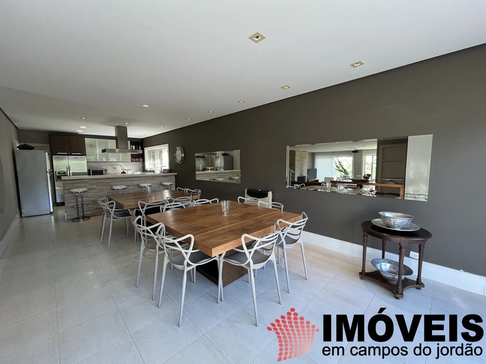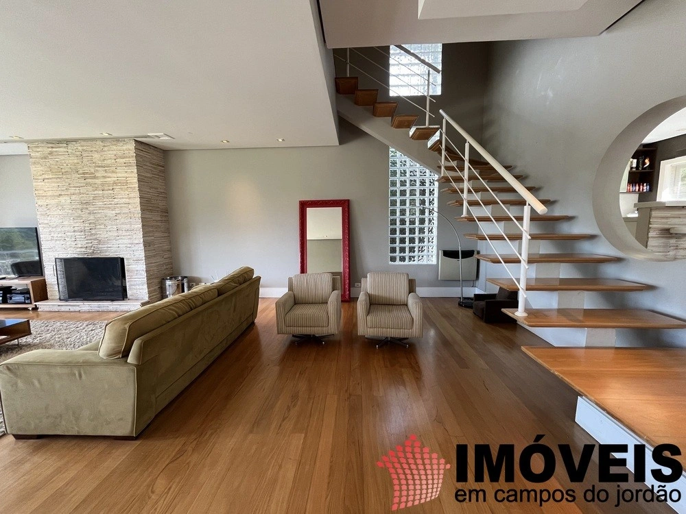Logo que você entra no imóvel, o amplo espaço de salas impressiona, uma lareira imponente e saída para a varanda para contemplar a natureza.