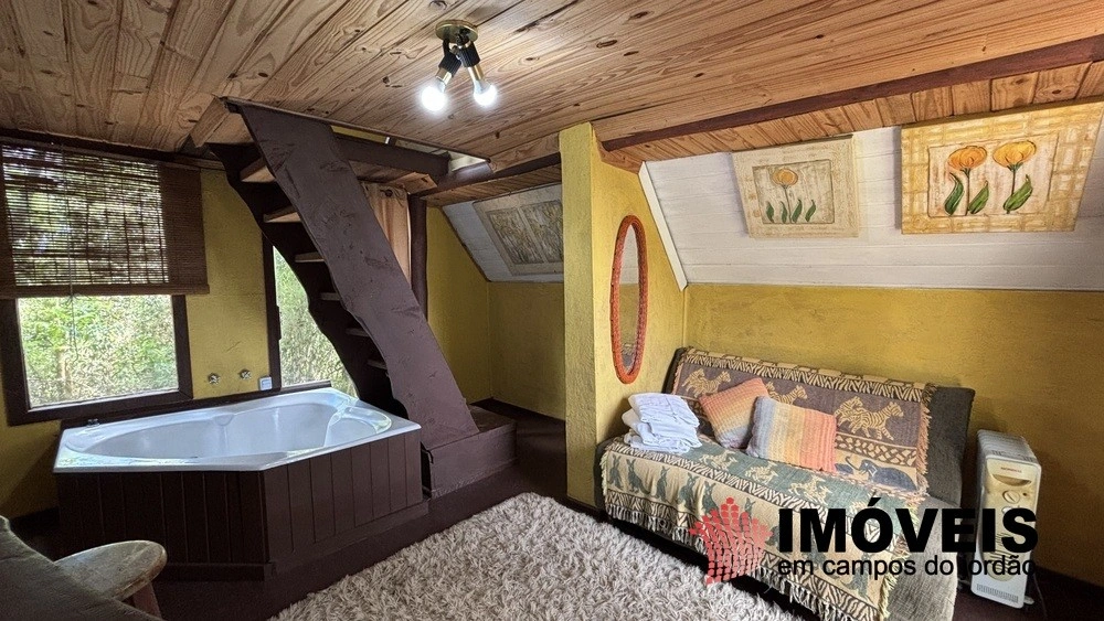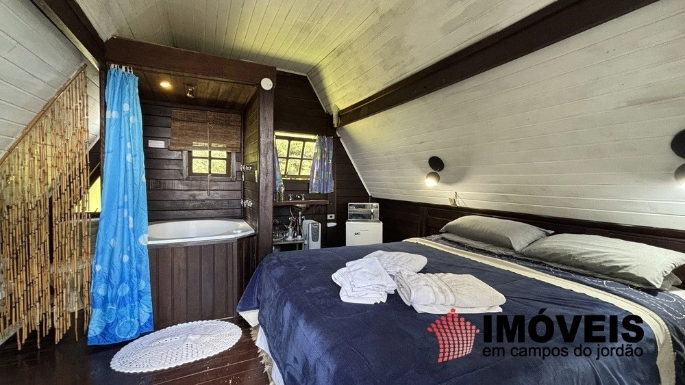 A casa principal oferece conforto e aconchego, com sala de lareira e suítes acolhedoras. Além disso, há uma charmosa casa de bonecas, garagem coberta e 4 chalés, sendo três de dois andares, todos com banheira de hidromassagem, ideais para momentos de descanso.