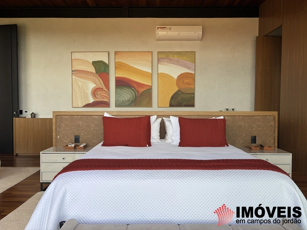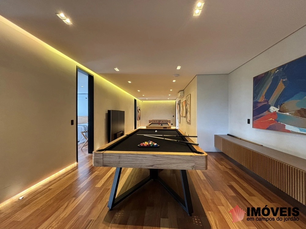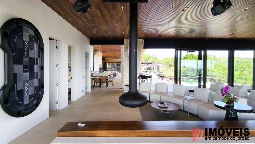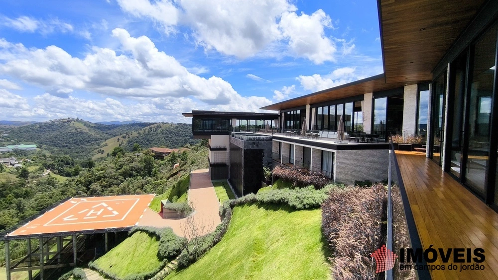 Luxo e modernidade em Campos do Jordão. Com 11 suítes, heliponto, piscinas e até pista de boliche.