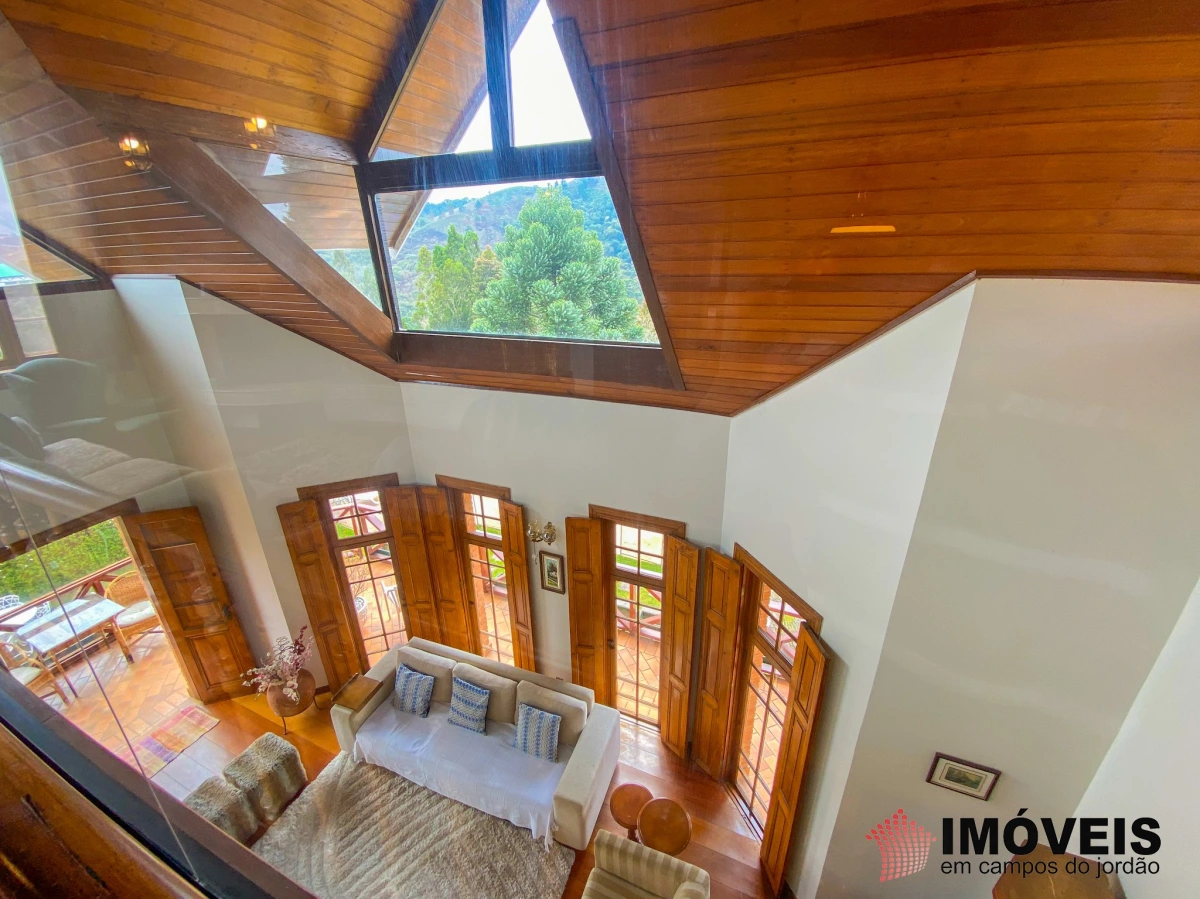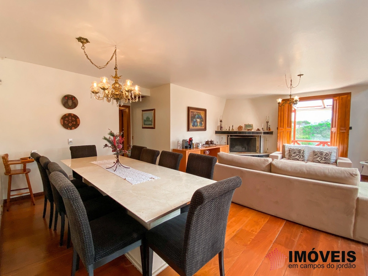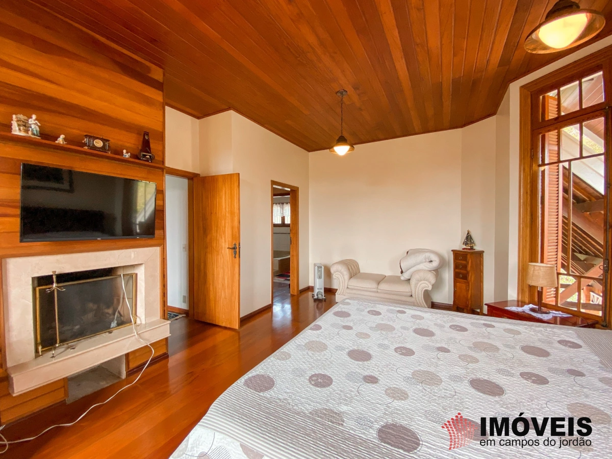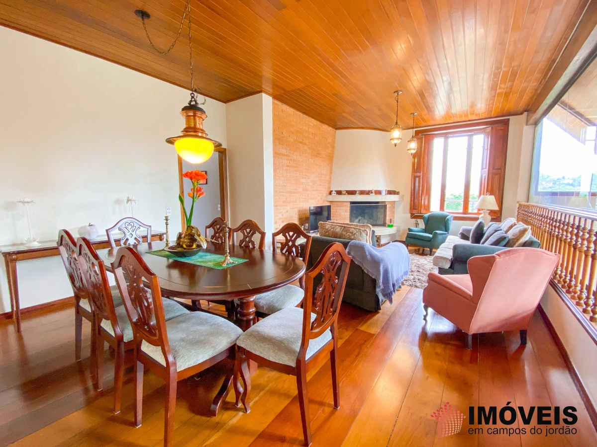 No andar acima living com 02 ambientes sendo Sala de estar com lareira e sala de jantar, anexos a um gazebo com vista panorâmica, + 02 suítes sendo uma máster com lareira e sacada e a outra de solteiro com armário planejado.