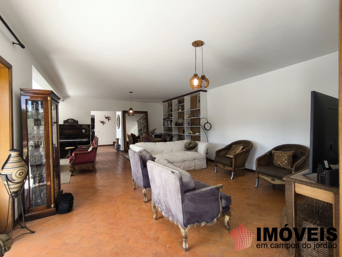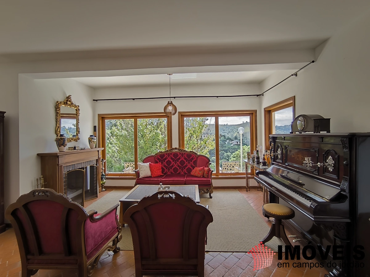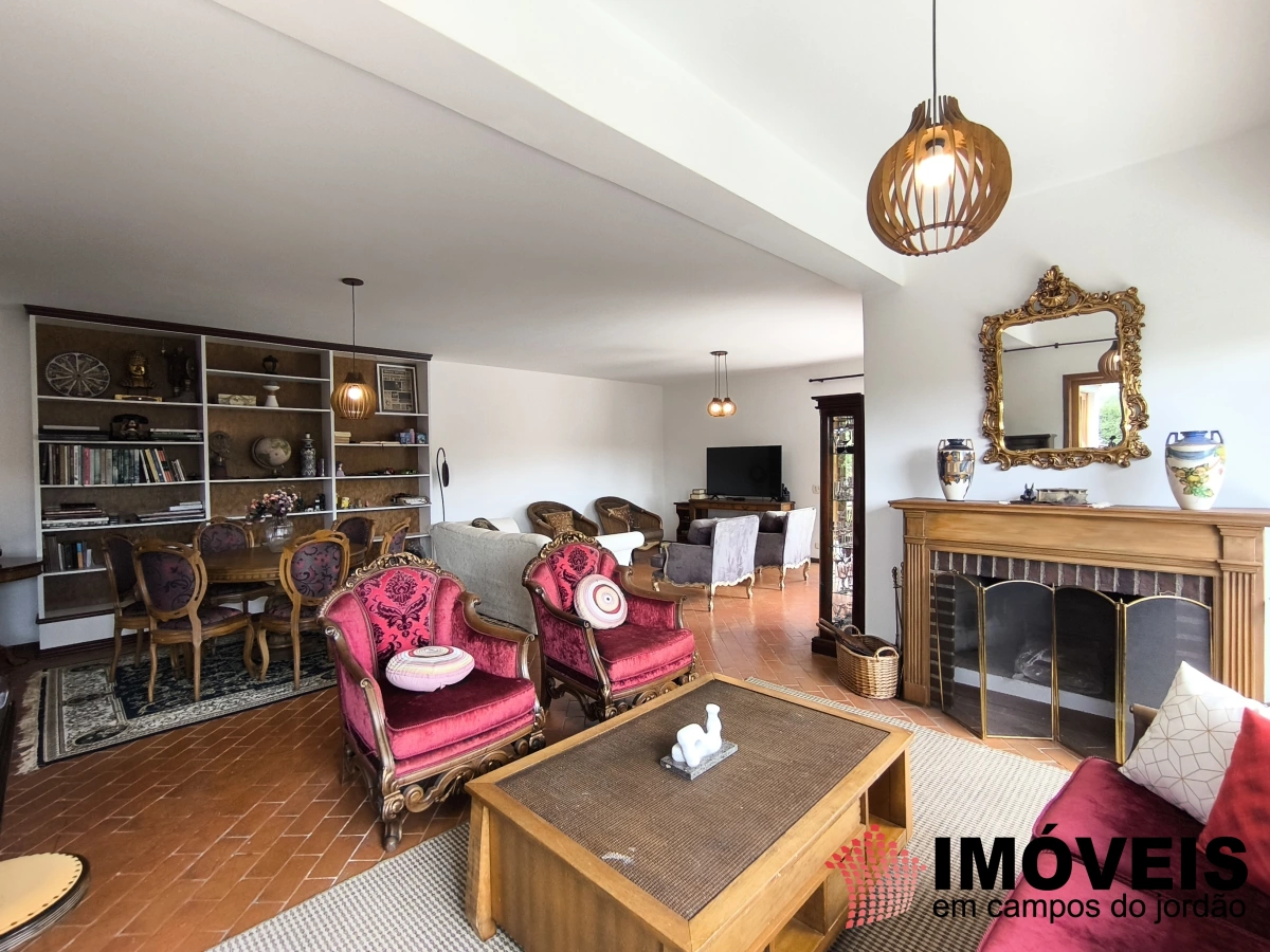 O hall de entrada impressiona e conduz à área social, composta por uma aconchegante sala de café ou chá, sala de estar com lareira, piano e estofados elegantes, além de uma confortável sala de TV.
