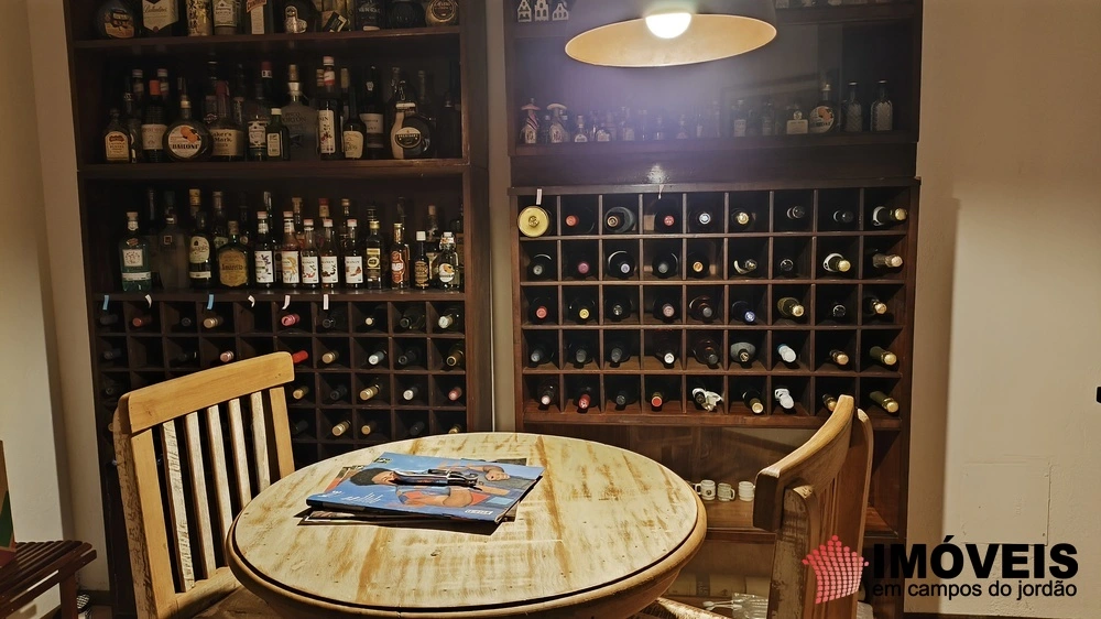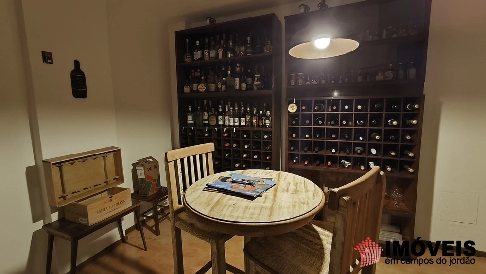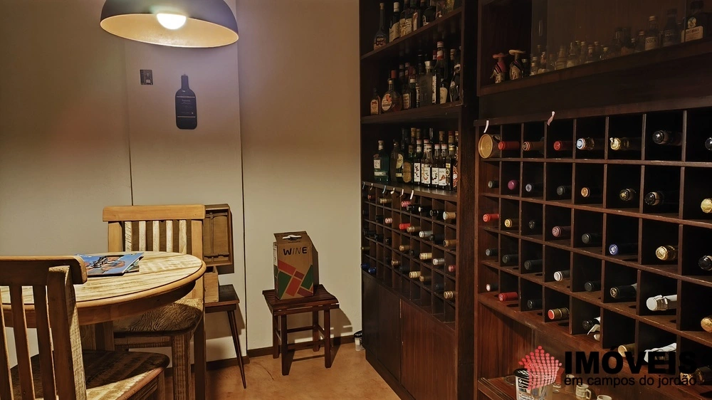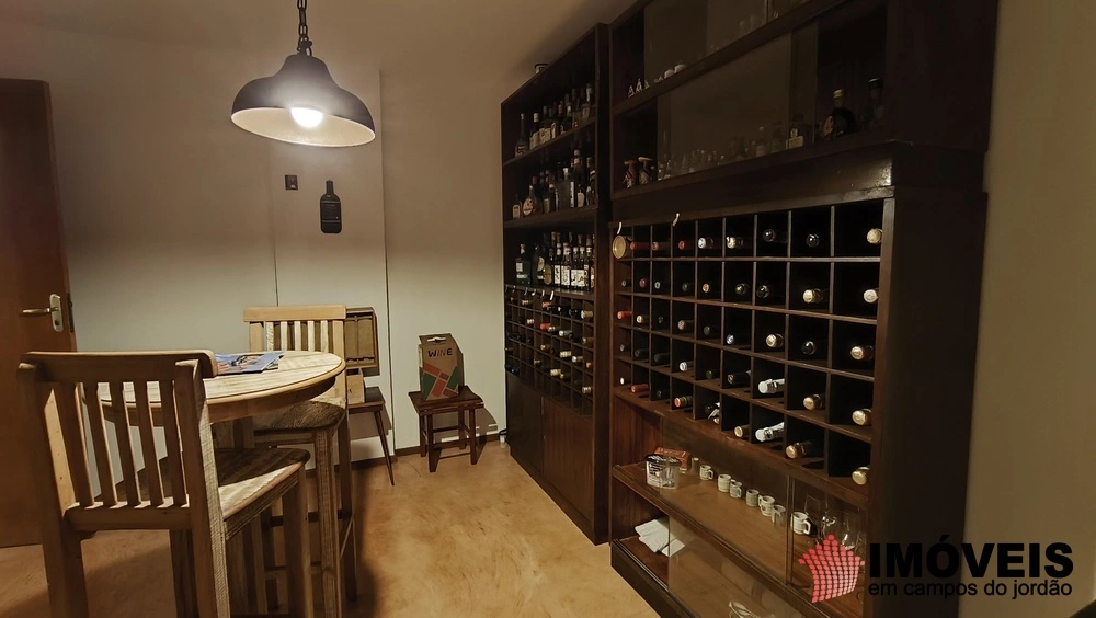 No andar abaixo do principal, há uma ampla sala que pode ser usada para jogos ou confraternizações, além de uma adega climatizada que é um dos grandes destaques da propriedade.