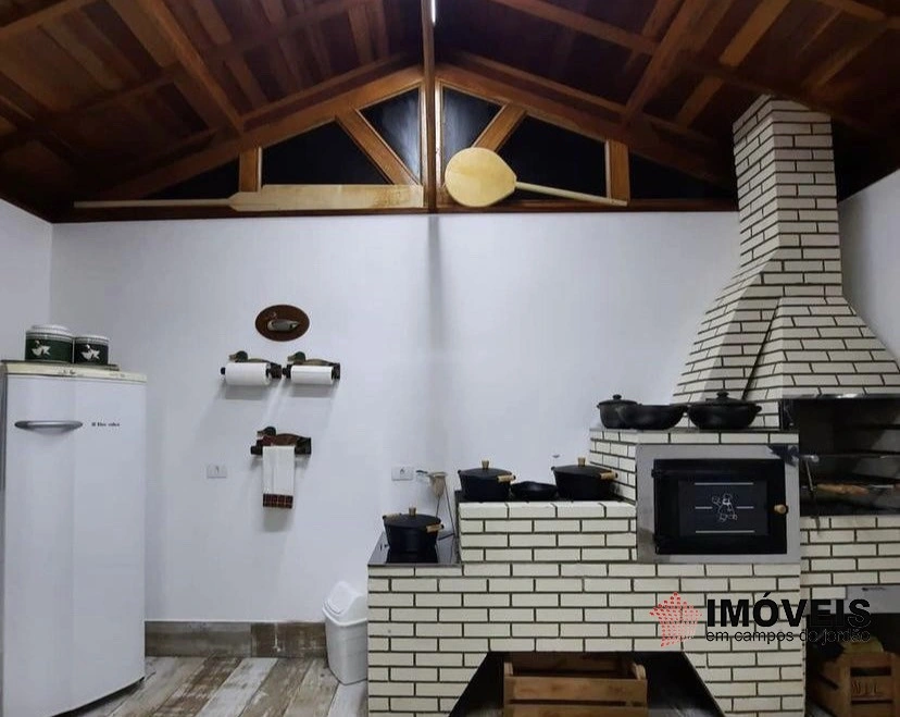 Ela tem 05 dormitórios sendo 03 suítes, sendo 04 delas com armários de madeira embutidos; 01 Lavabo com acesso em ponto estratégico para sala de jantar e sala de estar; uma ampla sala em dois ambientes com lareira e salamandra; sala de jogos ou para leitura com teto de vidro; sala de jantar, ampla cozinha com sala de descanso; Espaço Gourmet com churrasqueira, fogão e forno à lenha; aquecido o ambiente com salamandra; Fogo de Chão ao lado do espaço Gourmet; aquecimento nos banheiros e na cozinha de água por gás; Quadra de Tênis; Redário; Galinheiro; dependências separada para caseiro; asfalto na porta e vaga para muitos carros. Localizada 1,5 KM do centro Turístico do Capivari.