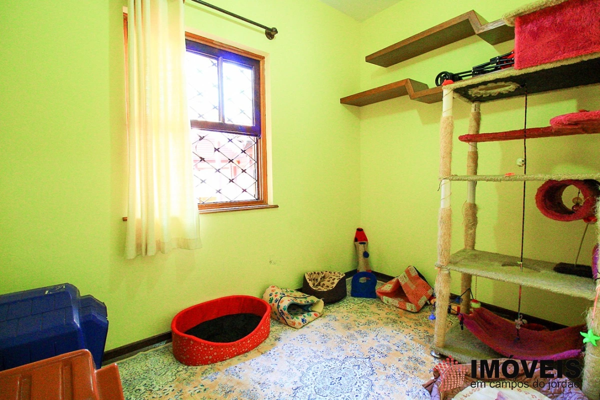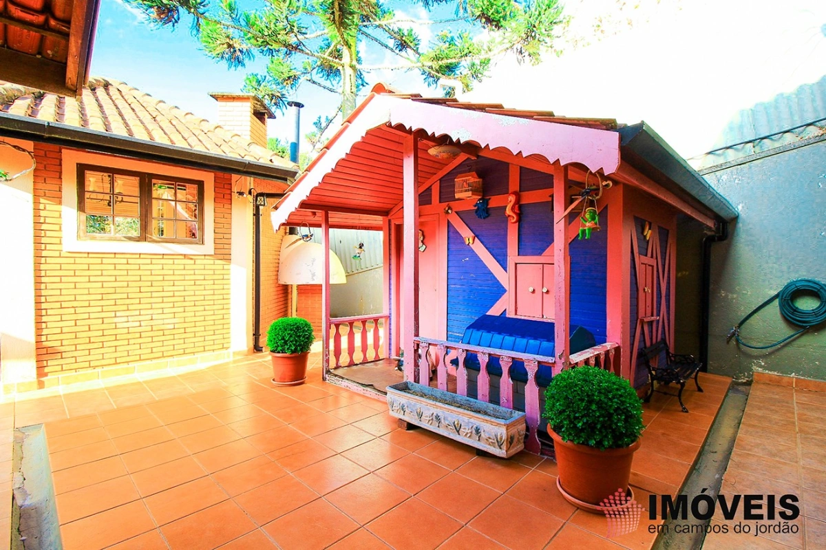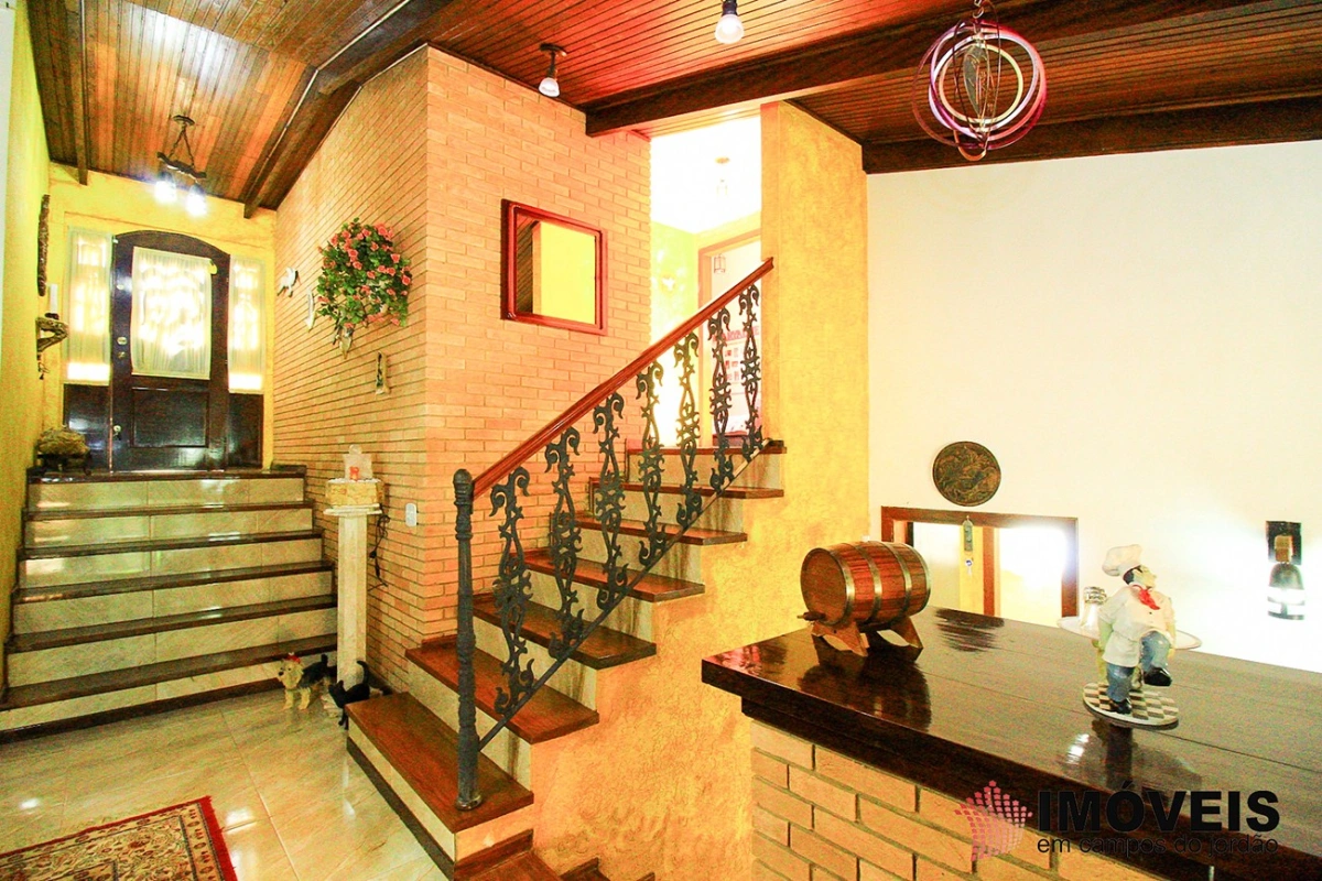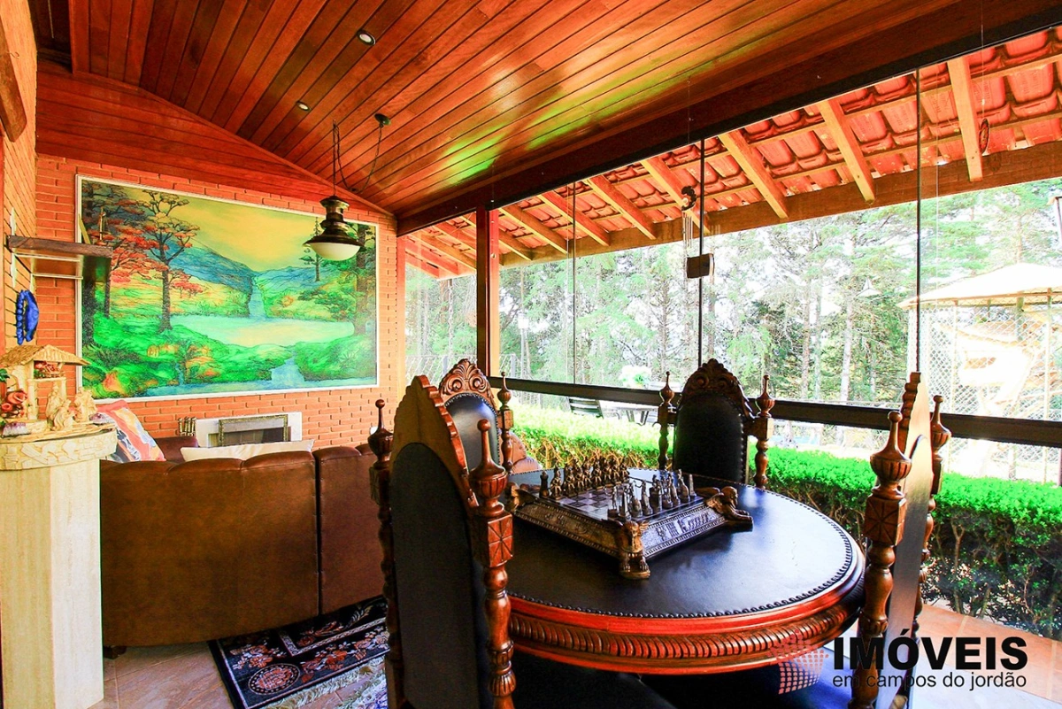 É composta de hall de entrada, 03 dormitórios sendo 01 suíte, 04 banheiros, sala de TV e estar com lareira, gazebo envidraçado com linda vista para o jardim, lavabo, bar e adega, sala de jantar, despensa, cozinha, área de serviço, lavanderia, aquecimento solar, casa de boneca, canil, hobby-box, quiosque com churrasqueira, forno de pizza e lavabo. campinho de futebol. Possui 02 vagas de garagem coberta.