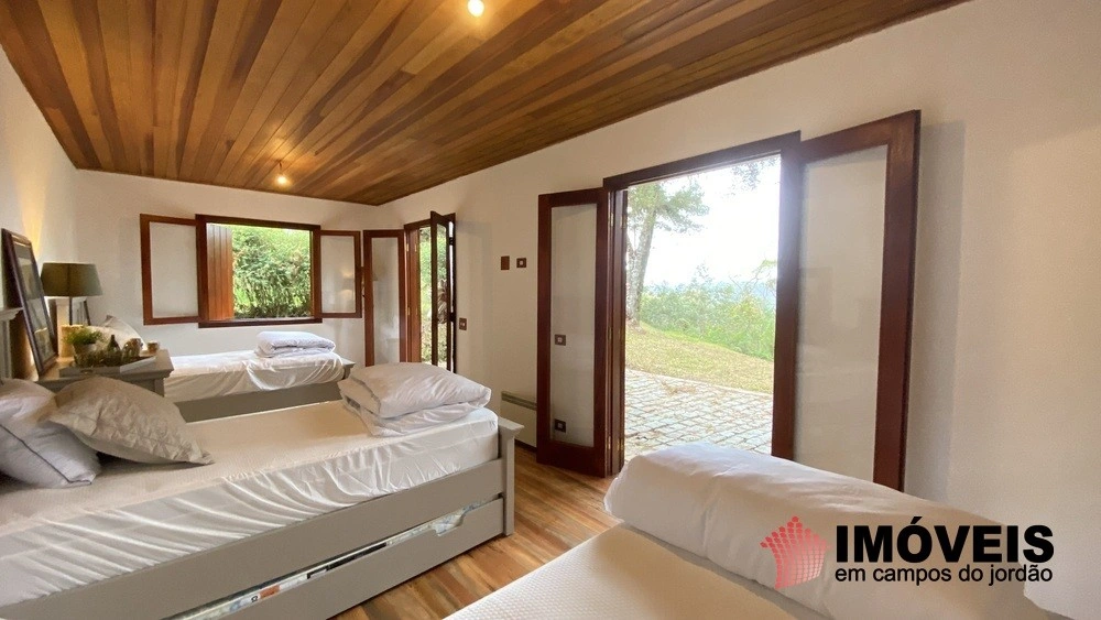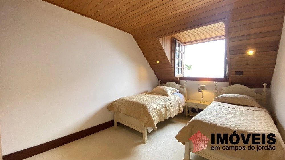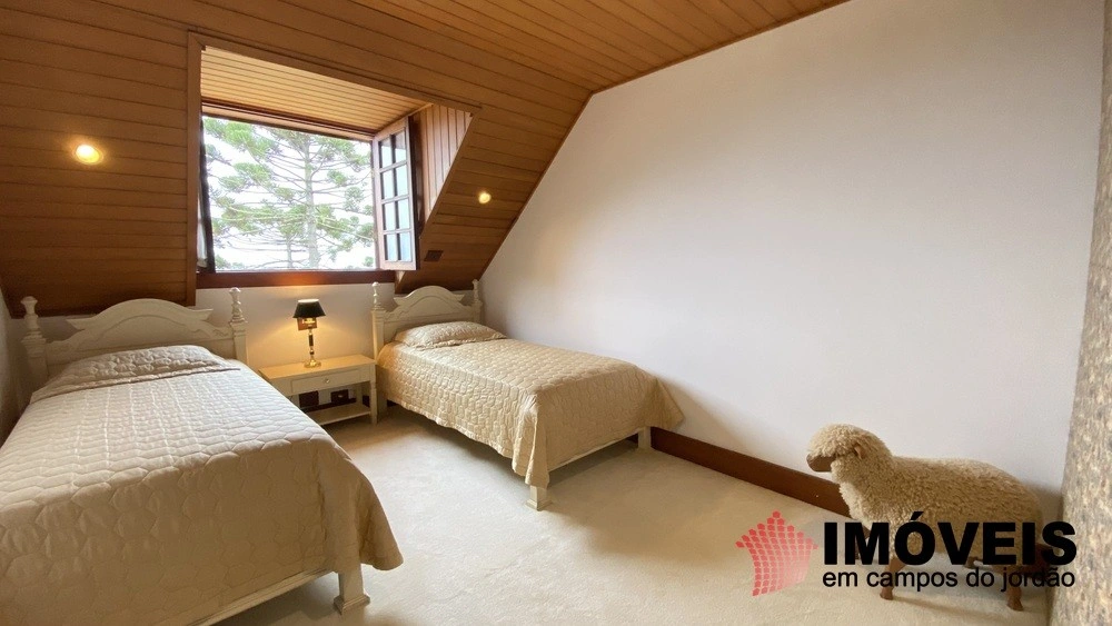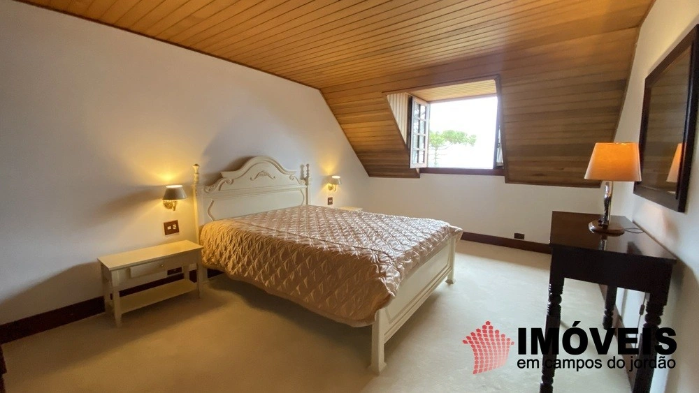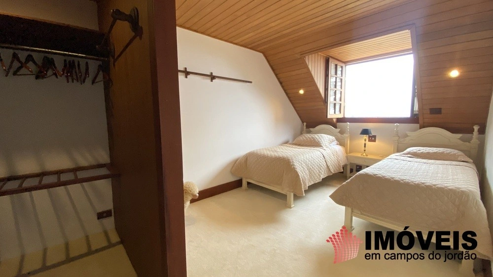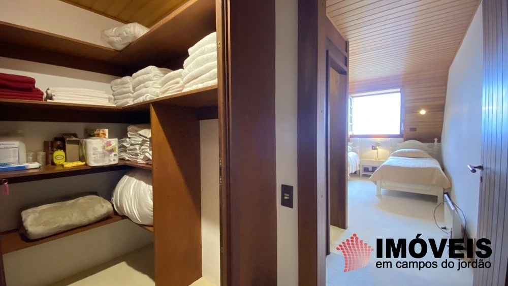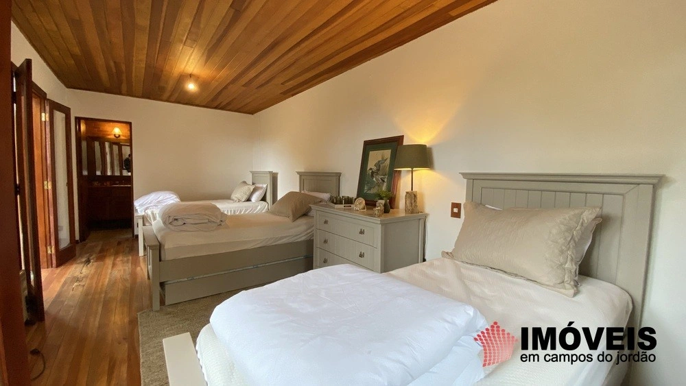 Com 06 aconchegantes dormitórios sendo 03 atendidos por um banheiro, closet em todos eles + um roupeiro com roupa de cama e banho completa, carpete e vista para o jardim que mais parece uma pintura. As três belas suítes do pavimento superior também são com carpete, sendo 01 suíte máster com hidromassagem, closet e uma sala dentro do dormitório mega confortável com sistema de som.