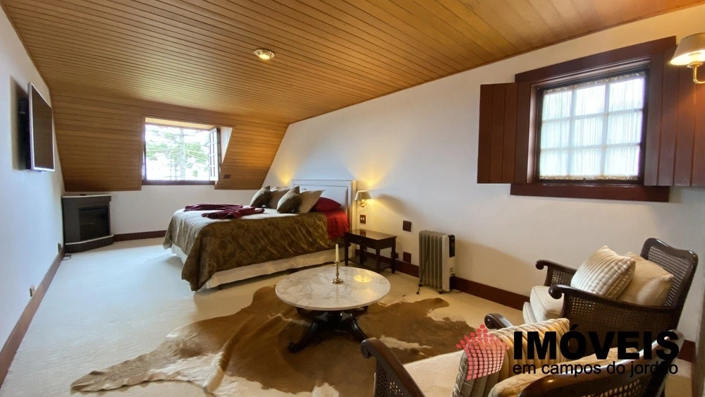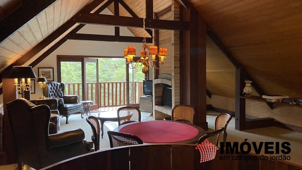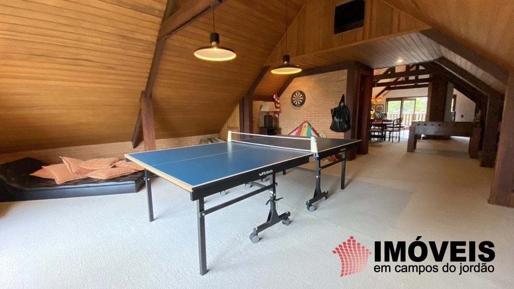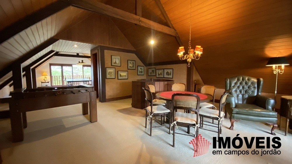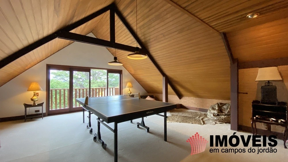 O sótão amplo com duas sacadas é todo no carpete e perfeito para um salão de jogos, já possuindo uma mesa de tênis de mesa, mesa de carteado e tem espaço tranquilamente se você desejar colocar uma mesa de bilhar, + sala de TV com lareira e lavabo.