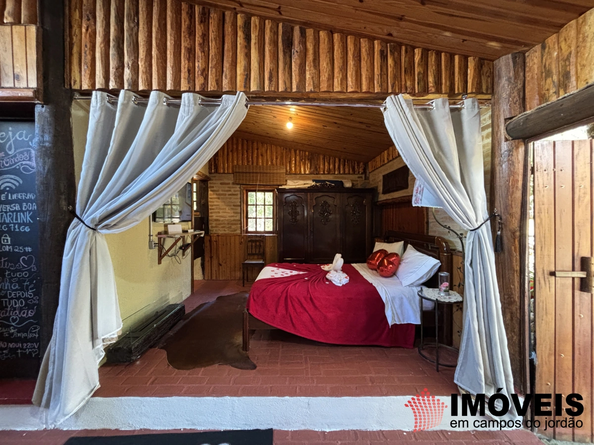 Venha desfrutar de momentos incríveis neste pedacinho do paraíso, no chalé principal tem-se sala de estar e jantar, cozinha, banheiro e dois dormitórios com sacada.