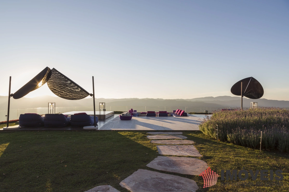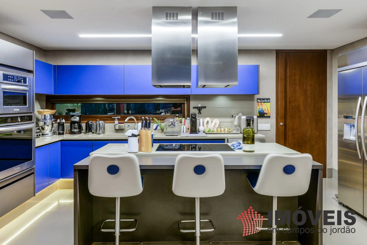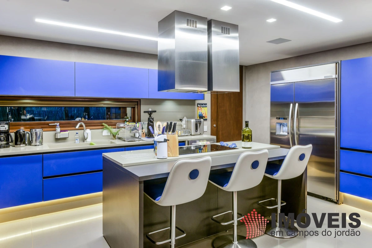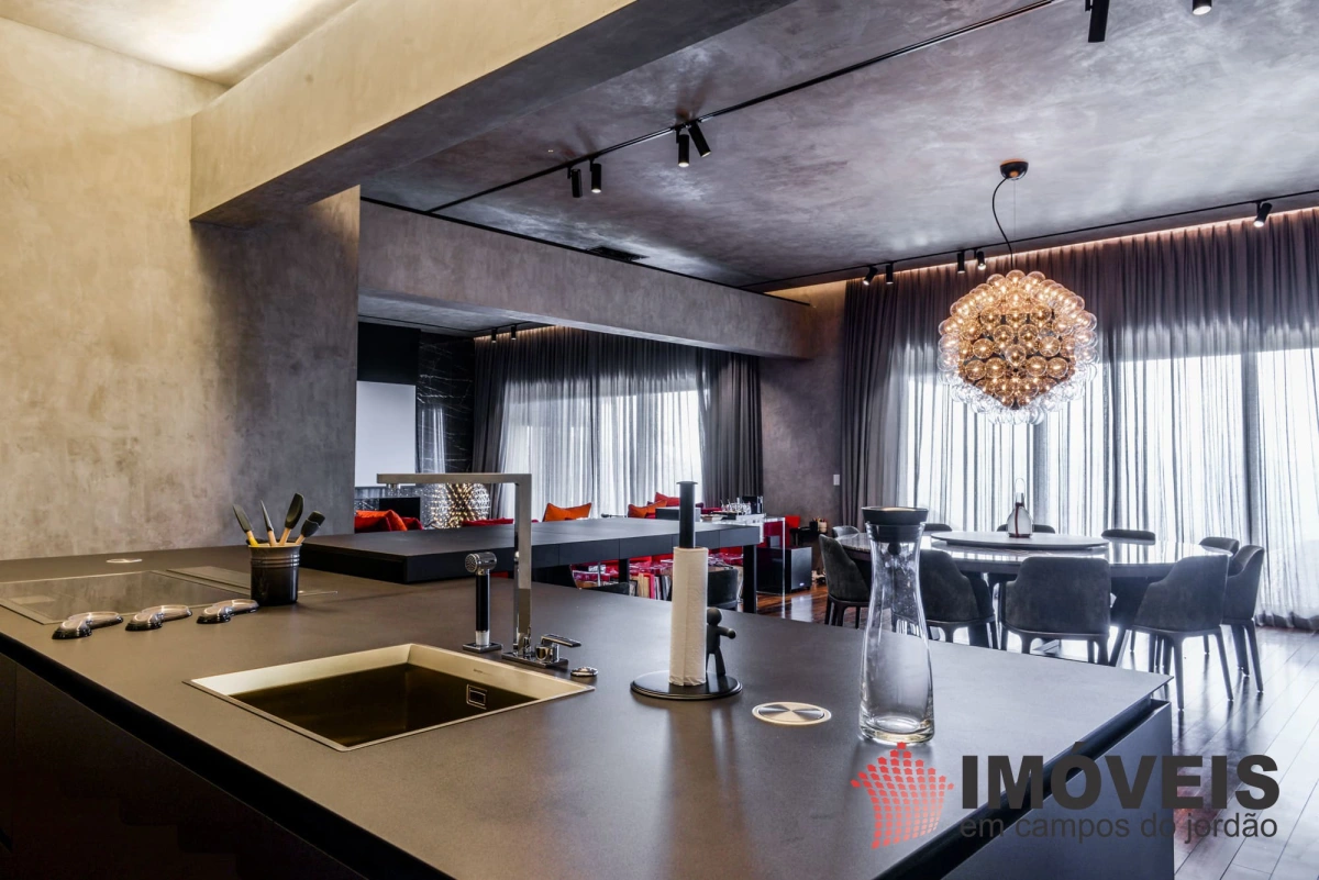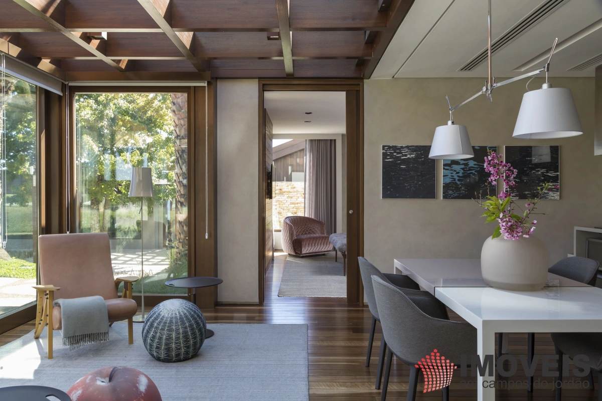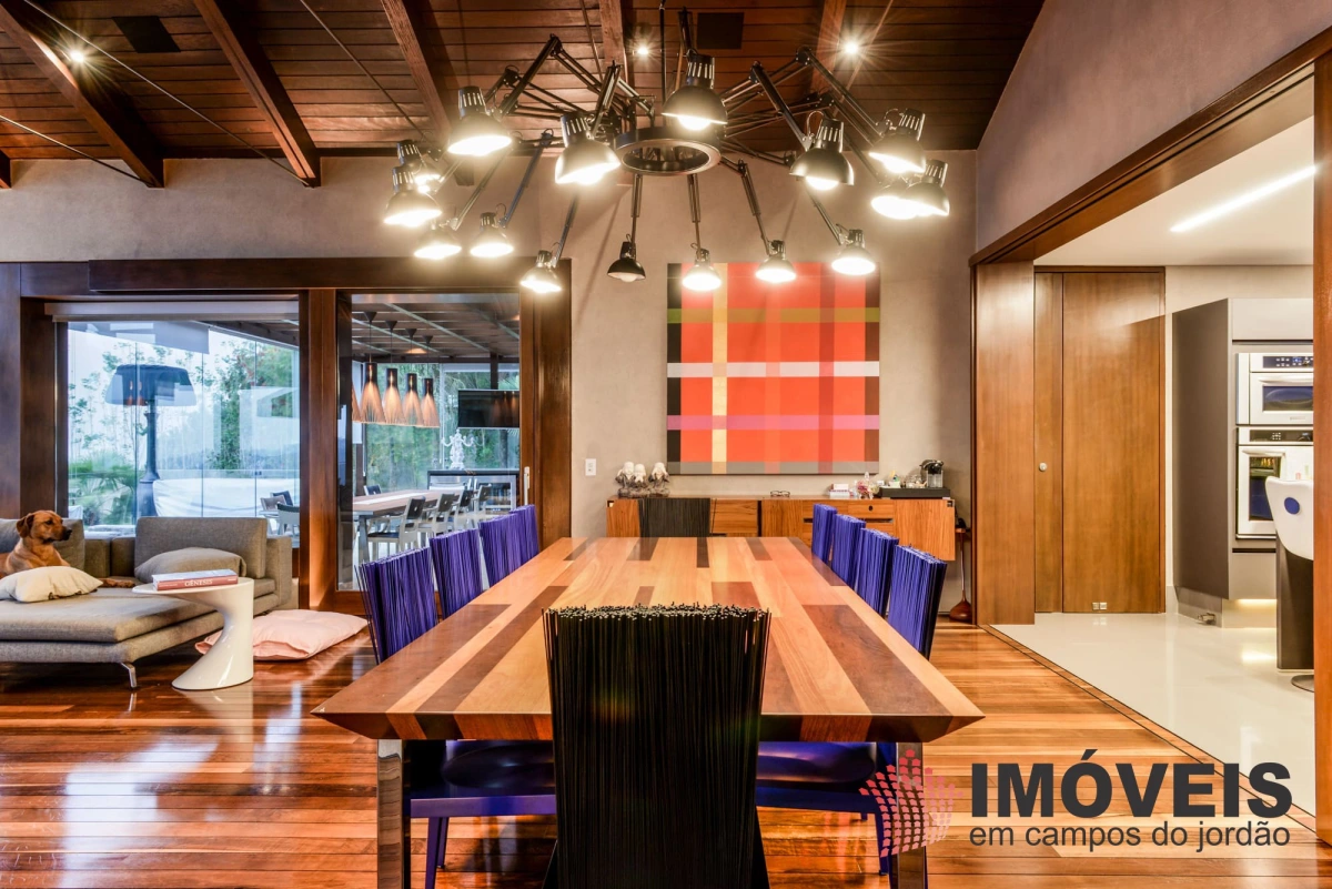 A Casa principal possuí 04 suítes sendo uma máster com telão e vista para a pedra do baú e uma cama super confortável, assinada pelos designers brasileiros “Irmãos Campana”, os banheiros com aquecimento de piso, aquecedores de toalhas, mobiliários Vallve, e metais Hansgrohe. Os dormitórios possuem cama super king com pilou top em pluma de ganso e toda rouparia Trousseau personalizada. Sistema de som e vídeo, aquecimento no piso e armários Kitchens. - Home Theater com sistema de som de primeira geração, TV 80 polegadas. - Lareira Externa a gás e coberta, com mobiliário alemão Dedon. - Living com mesa de jogos e mesa com lareira a butano, sofás italianos Minotti e integração com a sala de Jantar. - Churrasqueira Coberta com mesa Dedon by Stark para até 14 pessoas e varanda integrada com mobiliário Casual Exteriores e aquecedores italianos à gás. - Cozinha com armários Kitchens e equipamentos Kitchenaid, a mesma pode ser integrada ao living e a sala de jantar ou ser fechada para maior privacidade. - Lavanderia com armários e duas Lava e Seca LG. - Garagem com vaga coberta para 03 a 04 automóveis e mais um recuo descoberto para mais 03. - Spa Interno com banheira Versati para até 08 pessoas, TV embutida atrás do espelho, som ambiente, aquecimento de piso, cama de massagem, banheiro privativo e toda rouparia Trousseau personalizada, customizada exclusivamente para a casa. - Spa Externo para aproximadamente 10 pessoas integrado com um ambiente contendo lareira externa e um telão retrátil em Led de 160 polegadas.