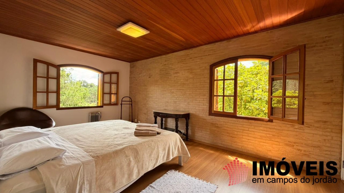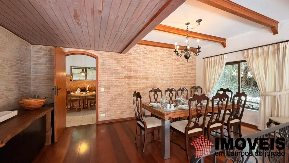Totalmente envolvida por cerca viva e natureza exuberante, a chegada ao imóvel já encanta. No pavimento principal, um charmoso lavabo e uma sala de TV privativa antecedem uma área social simplesmente impressionante: salas amplas, incluindo uma sala rebaixada de estar e TV com lareira revestida em pedra, criando um ambiente acolhedor e sofisticado. Tudo se conecta a uma varanda gigantesca, equipada com mesas para café da manhã, churrasqueiras e uma vista encantadora para o jardim, acompanhada pelo canto dos pássaros e o ar puro da montanha.