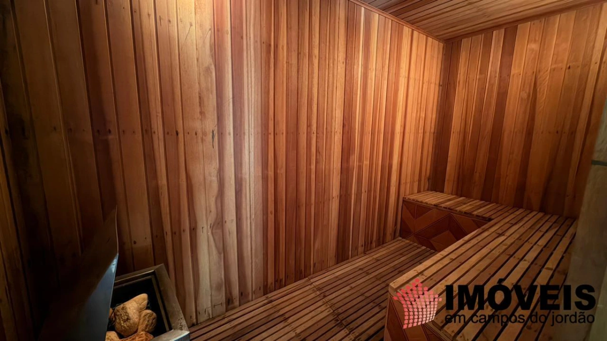 No pavimento inferior, com acesso independente, encontram-se a garagem coberta para dois automóveis, amplo estacionamento e um delicioso espaço social adicional, composto por lavabo, sala de jogos com mesa de carteado, sala de lareira e uma convidativa sauna seca — um verdadeiro refúgio para relaxar em qualquer época do ano.