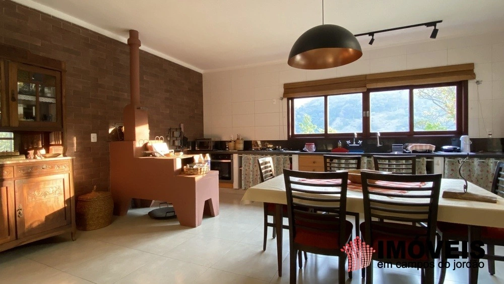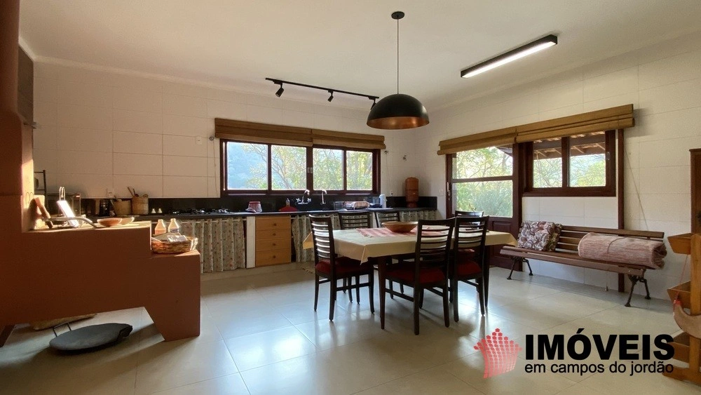 1 cozinha ampla, totalmente equipada : cook top, forno elétrico, fogão a lenha, cristaleira, prateleiras embaixo da pia, gaveteiros, geladeira, freezer, mesa com 6 cadeiras.