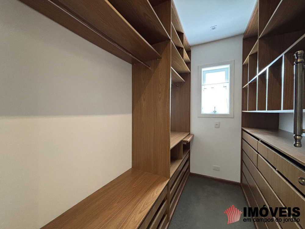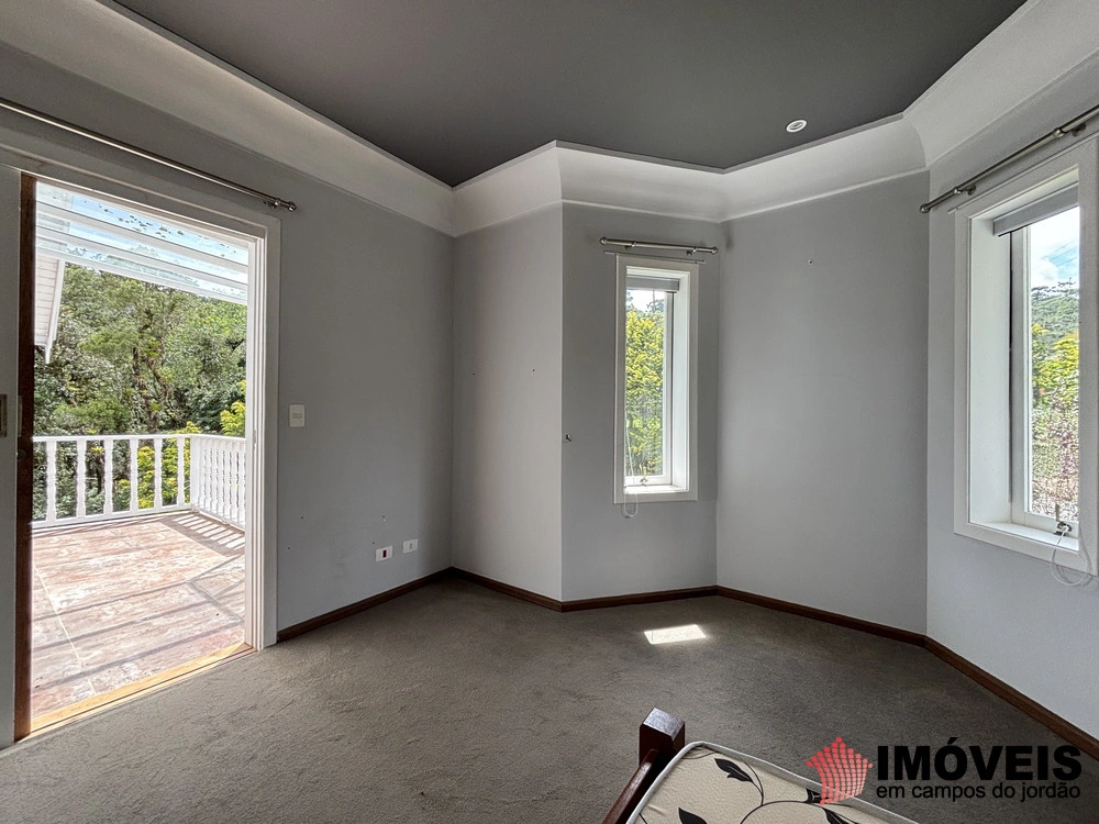 No andar superior, quatro suítes, sendo três com sacadas que permitem que você respire a brisa da montanha e contemple a vastidão da mata ao redor. O carpete macio, que reveste o piso, é um conforto térmico a mais. Cada suíte é um pequeno retiro, onde você pode se perder em seus próprios pensamentos, rodeado pelo conforto de uma casa que foi feita para você.