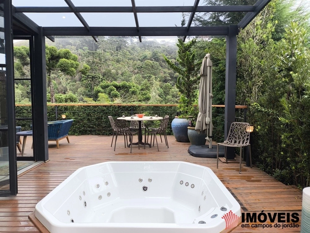 O deck com hidromassagem e uma vista deslumbrante para a natureza de Campos do Jordão completam todo esse canário de beleza.