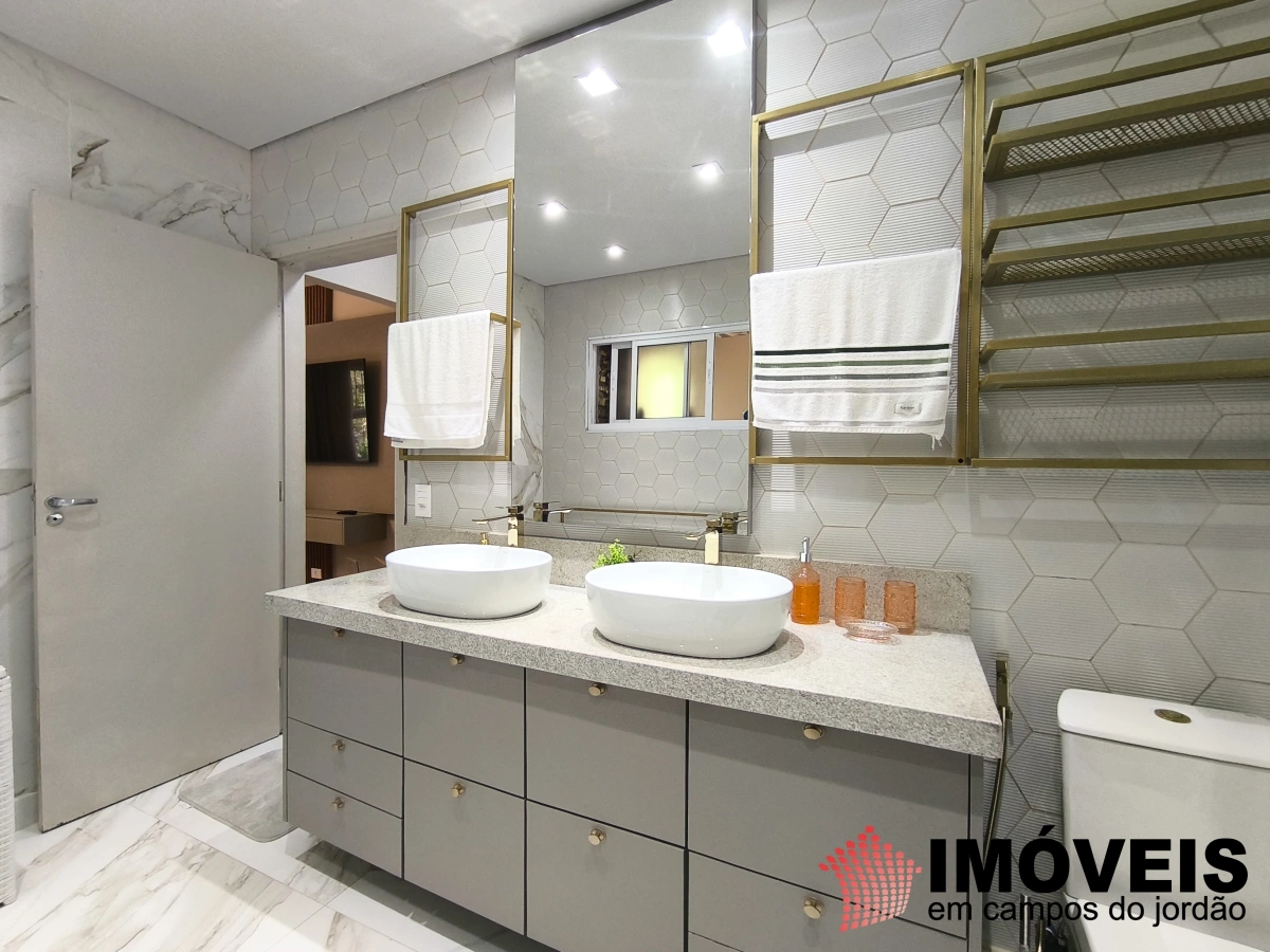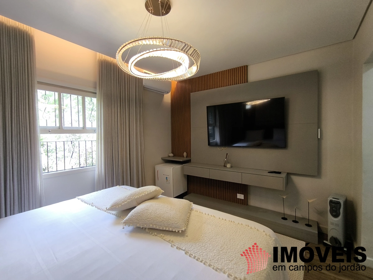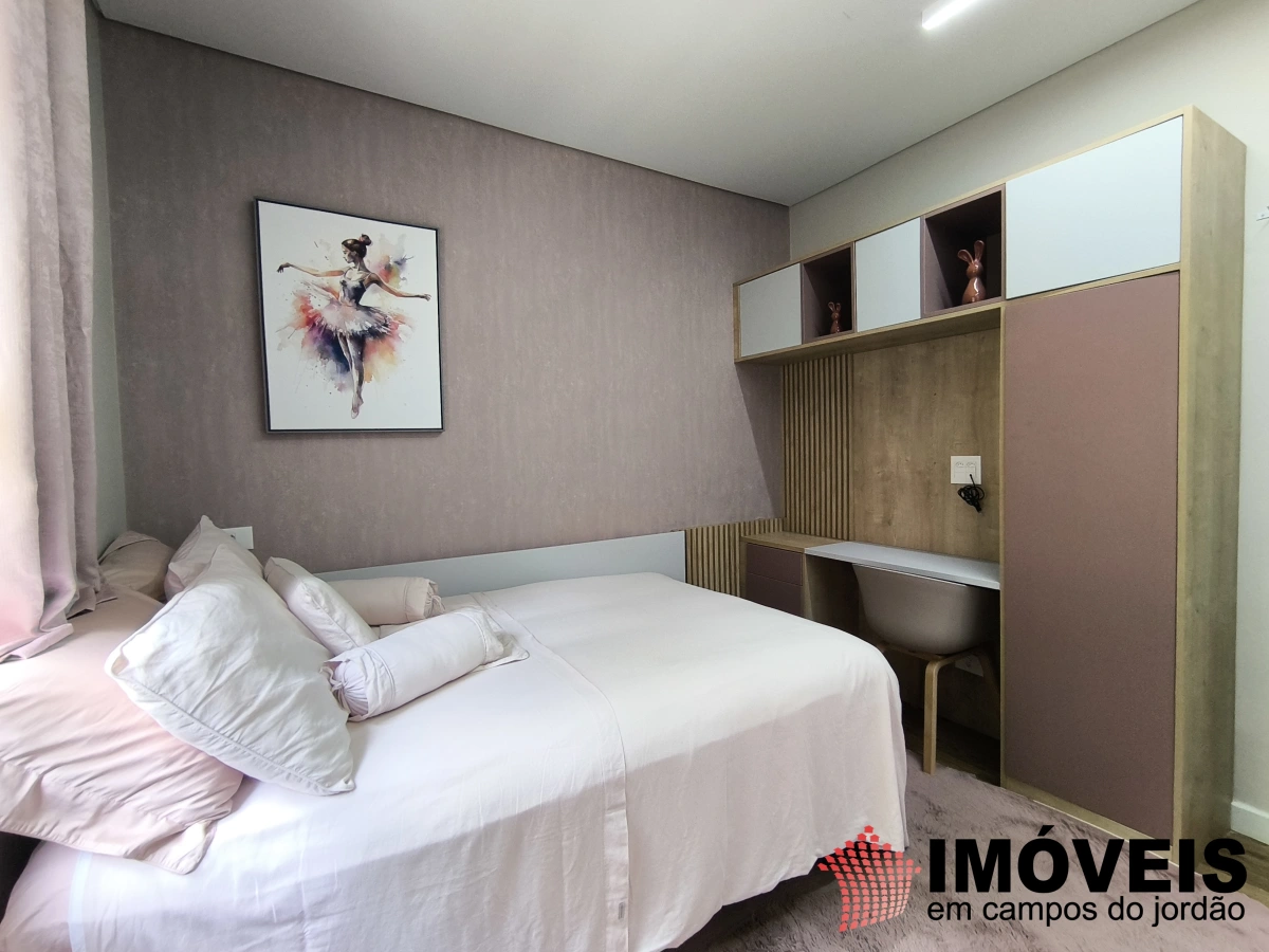A área íntima conta com cinco dormitórios, sendo três suítes. A suíte master é um destaque especial: espaçosa, com closet duplo (Sr. e Sra.) e um banho pensado para o descanso, com banheira de imersão, onde o tempo desacelera e o contato com a tranquilidade da serra se torna ainda mais intenso.
