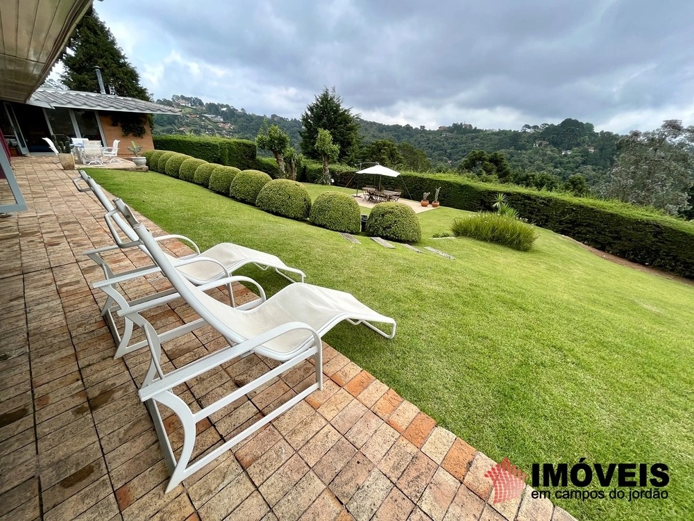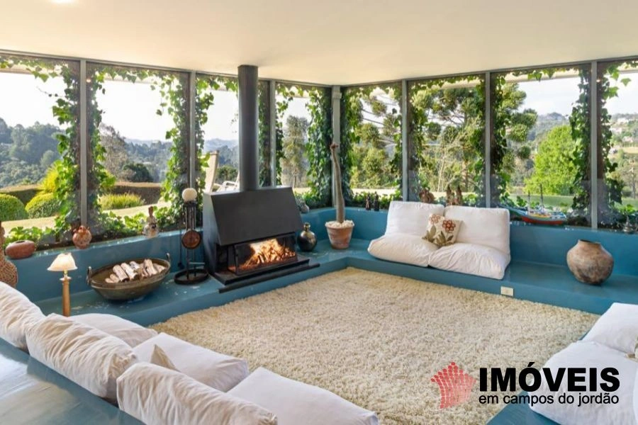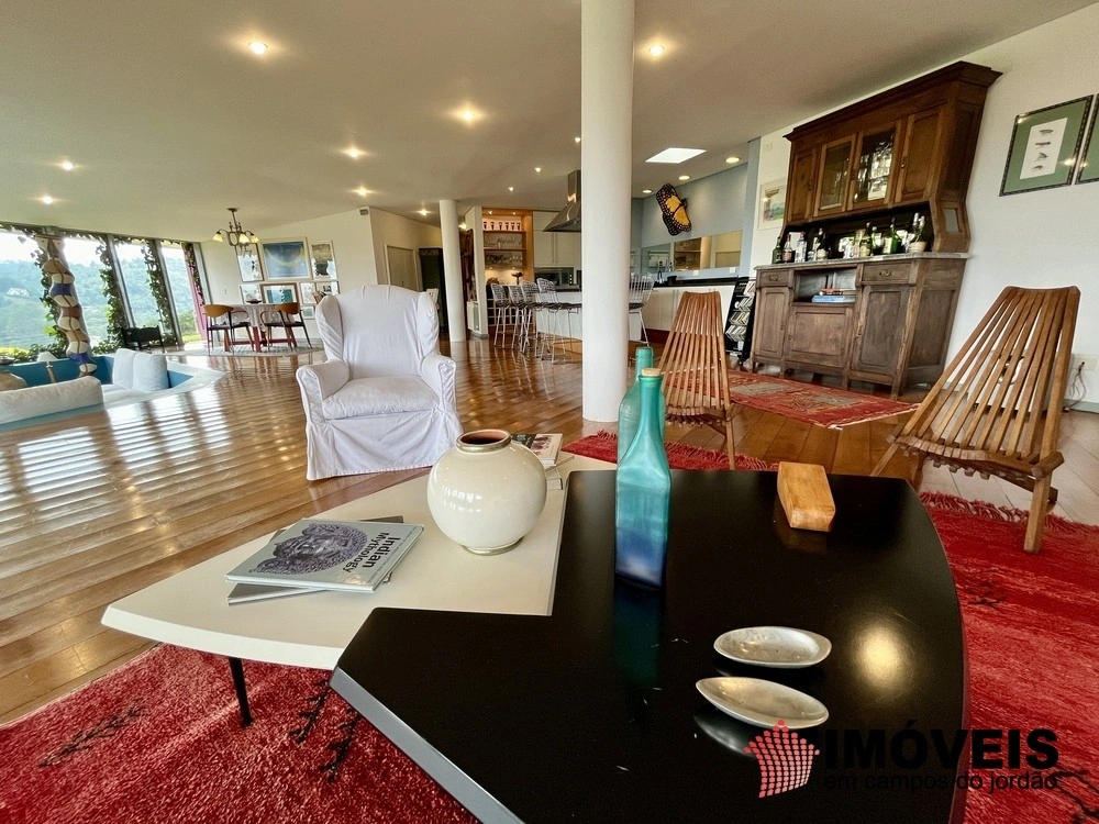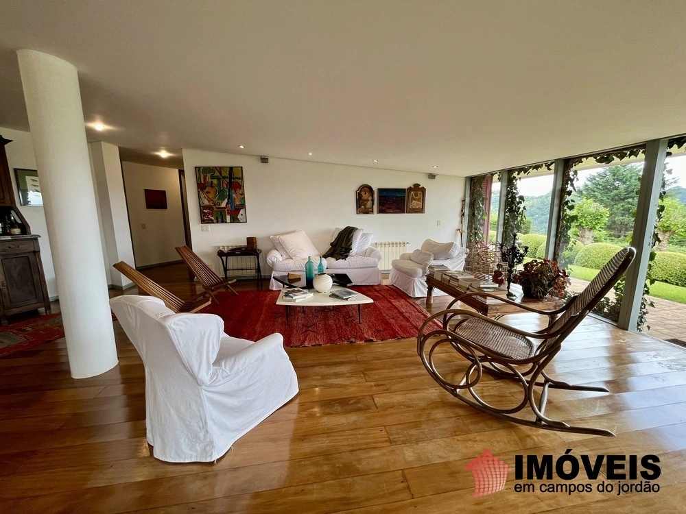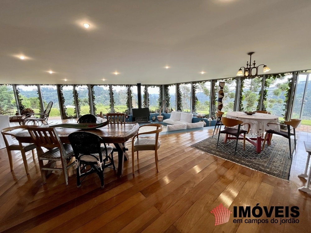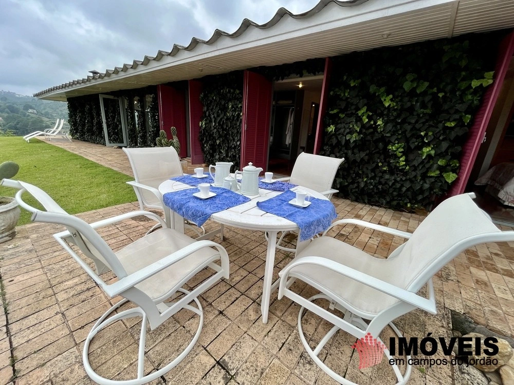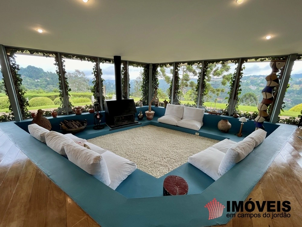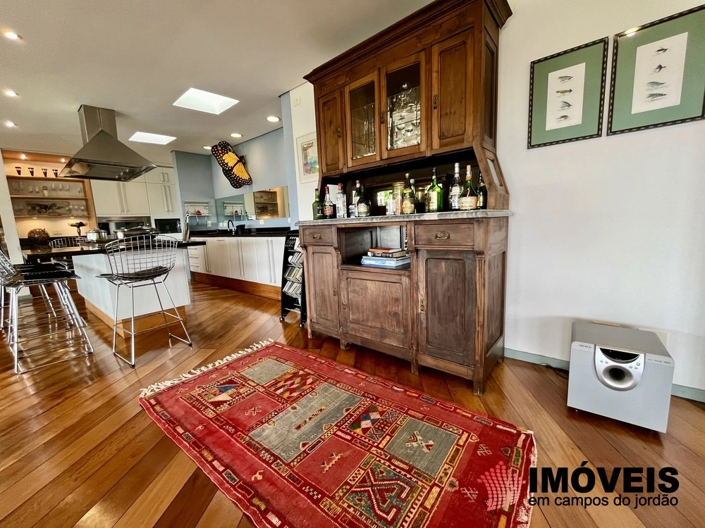 Cozinha toda equipada com ilha central, mármore São Gabriel com fogão industrial, móveis planejados, mais cozinha gourmet, despensa, várias salas de estar com vista para o jardim e um grande charme é a fachada envidraçada com trepadeiras o que cria um clima de serra e campo, iluminação perfeita, lavanderia ampla, depósito de lenha, garagem e amplo jardim com mesa e bancos para curtir o sol da montanha.