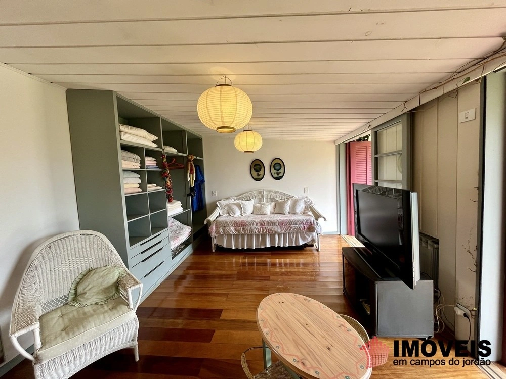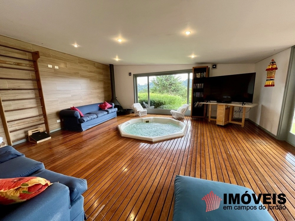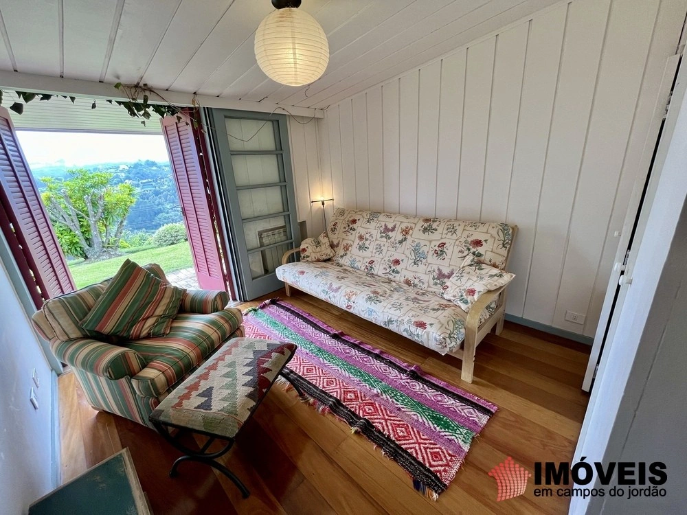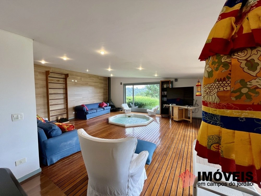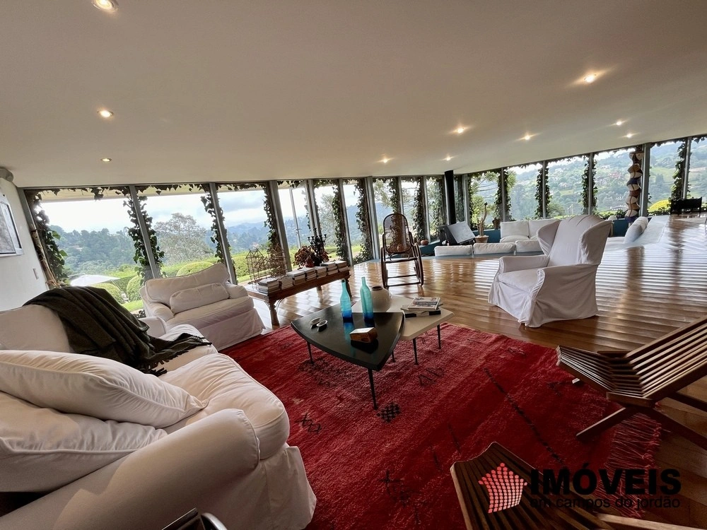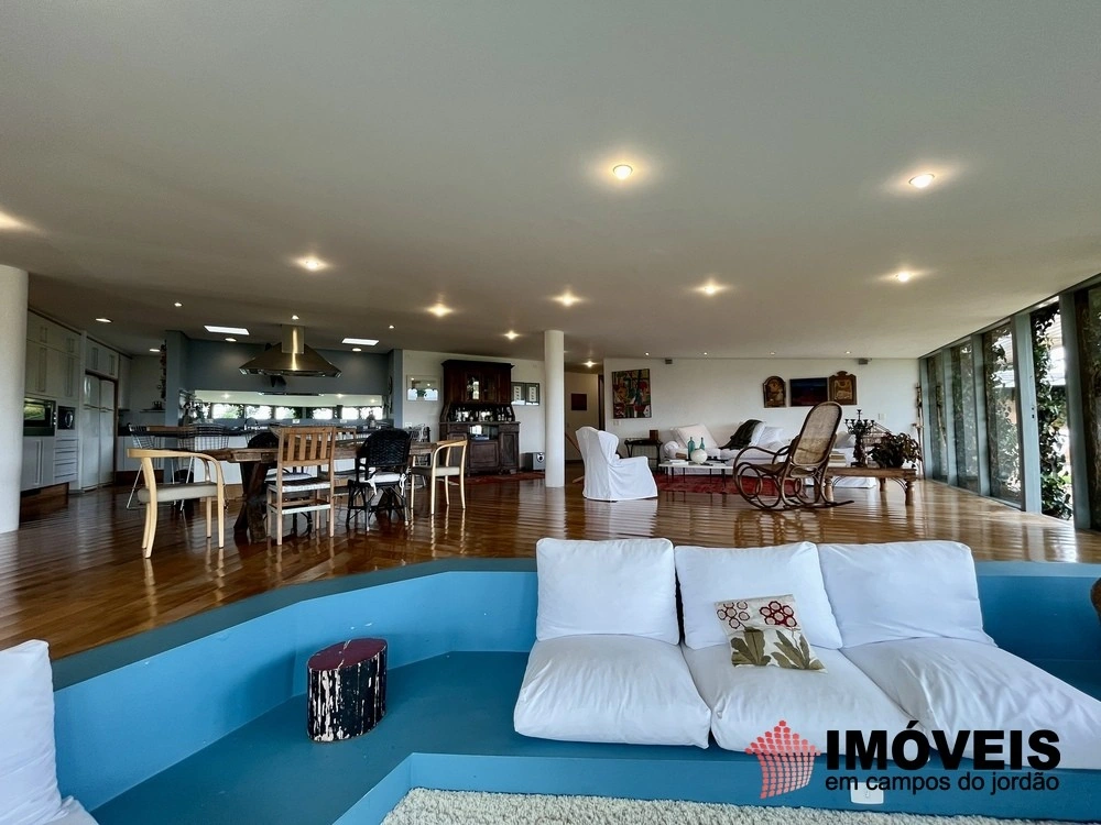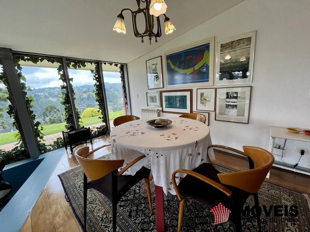 Cozinha toda equipada com ilha central, mármore São Gabriel com fogão industrial, móveis planejados, mais cozinha gourmet, despensa, várias salas de estar com vista para o jardim e um grande charme é a fachada envidraçada com trepadeiras o que cria um clima de serra e campo, iluminação perfeita, lavanderia ampla, depósito de lenha, garagem e amplo jardim com mesa e bancos para curtir o sol da montanha.