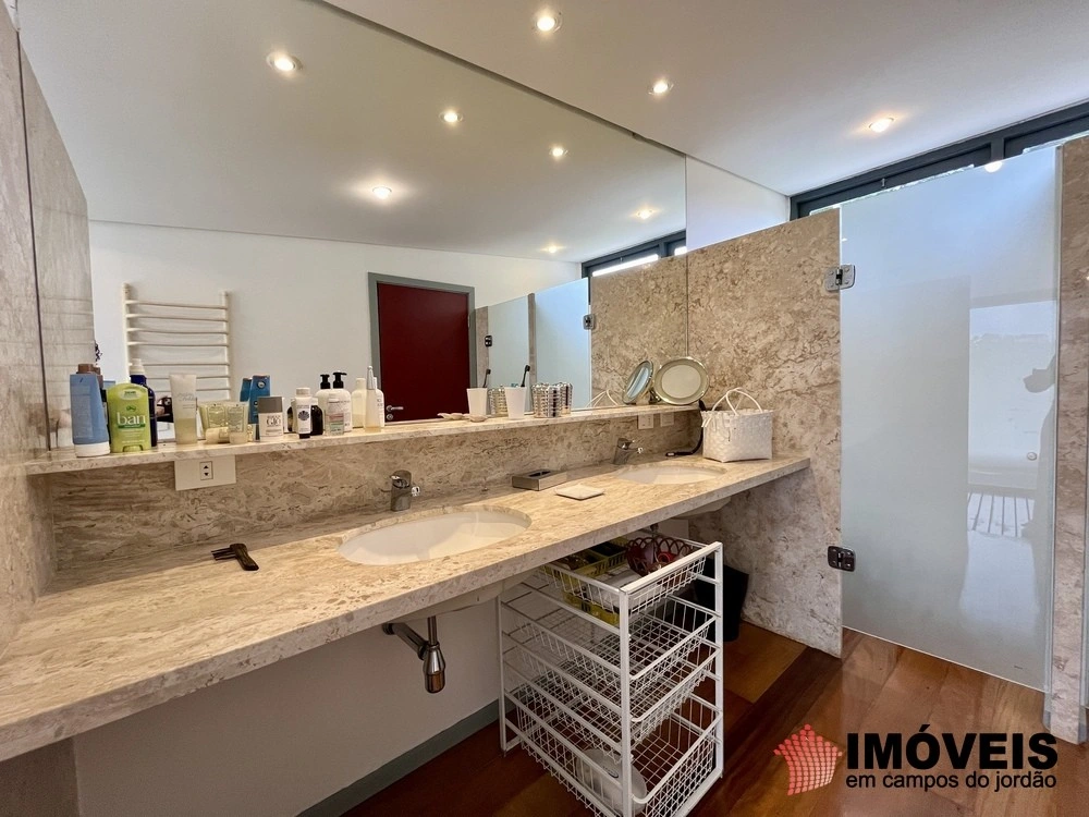 São 05 confortáveis dormitórios sendo 03 suítes, sistema de calefação, armários embutidos, mobília e fino acabamento, além de uma decoração de muito bom gosto, Spa com Jacuzzi para você relaxar, com lareira, televisão, sauna seca e banheiro completo com ducha.