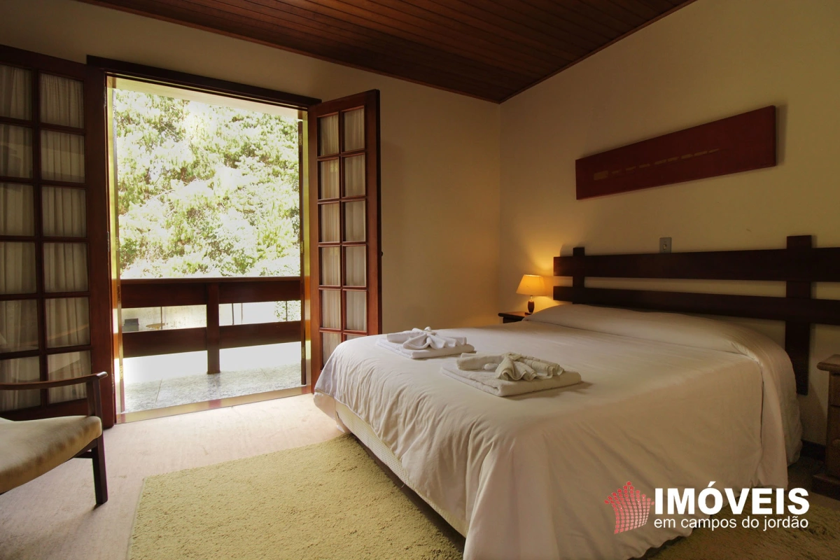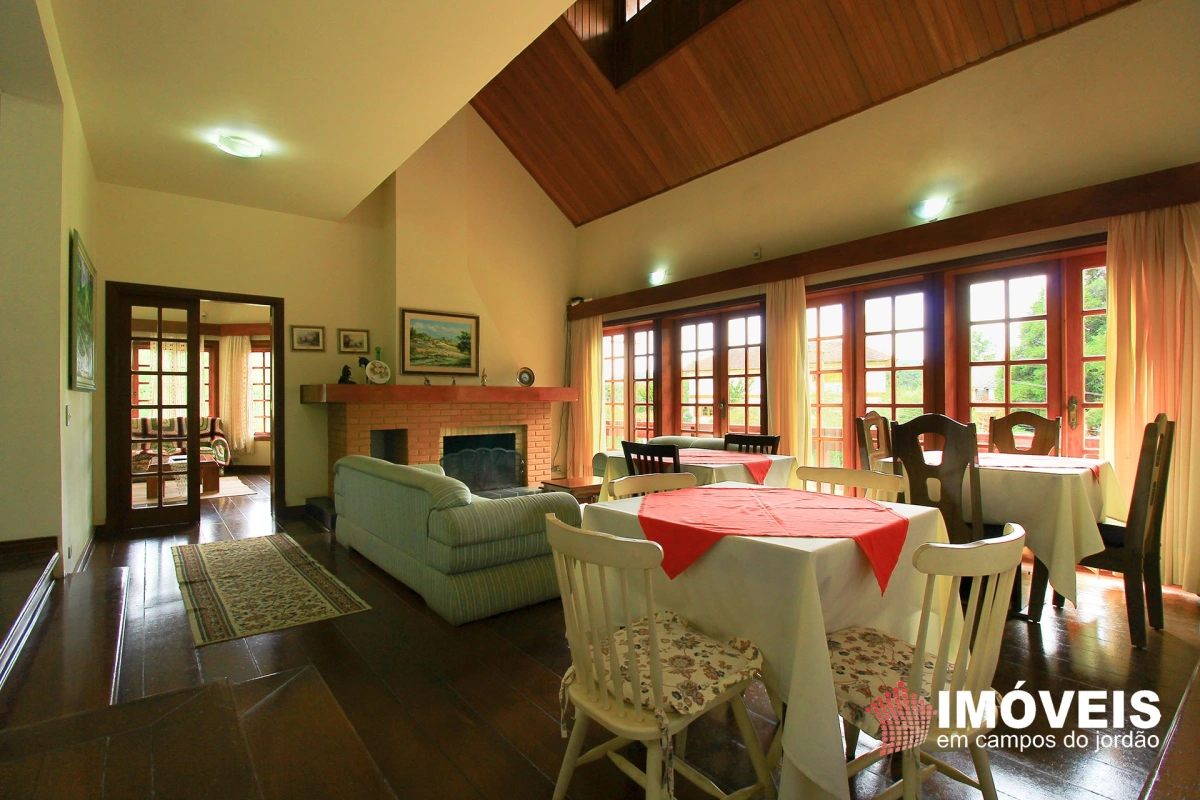 imóvel contendo sala de estar com lareira, sala de jantar, sala de tv, 8 dormitórios, sendo 06 suítes, suíte master com hidromassagem, e varanda, cozinha, despensa, 07 banheiro, lavabo, sala de jogos com lareira, dormitório de empregada com banheiro, um pequeno bar, lavanderia, aquecimento á gás, com 3 placas solares. Casa de caseiro contendo sala, 2 dormitórios, cozinha americana, banheiro, com espaço gourmet. Próximo ao Hotel Matarazo, Colônia de férias Assefaz e Parque Tarandu.
