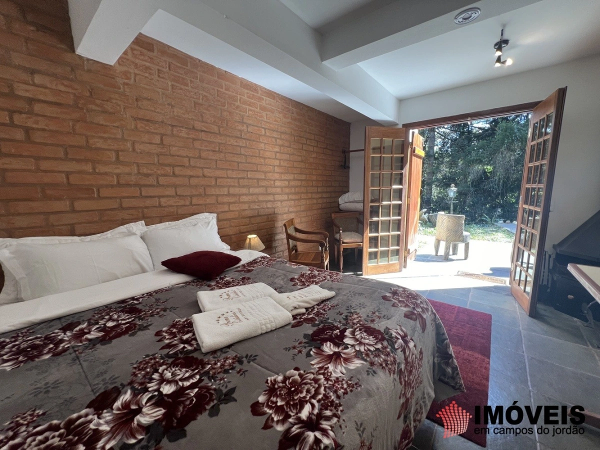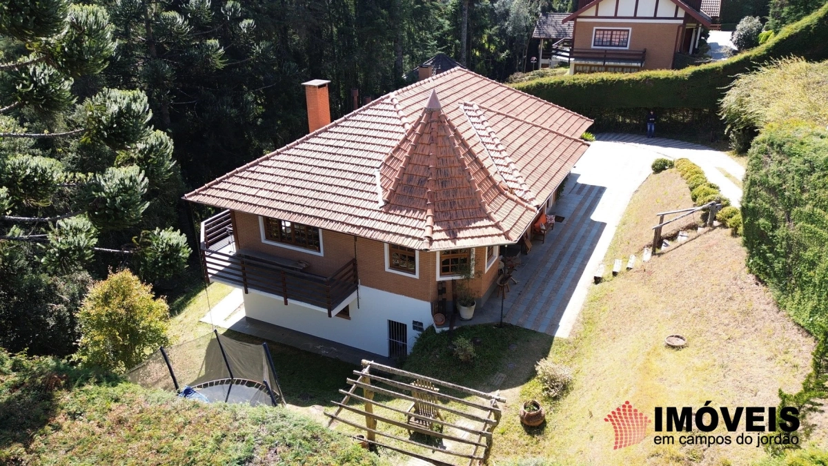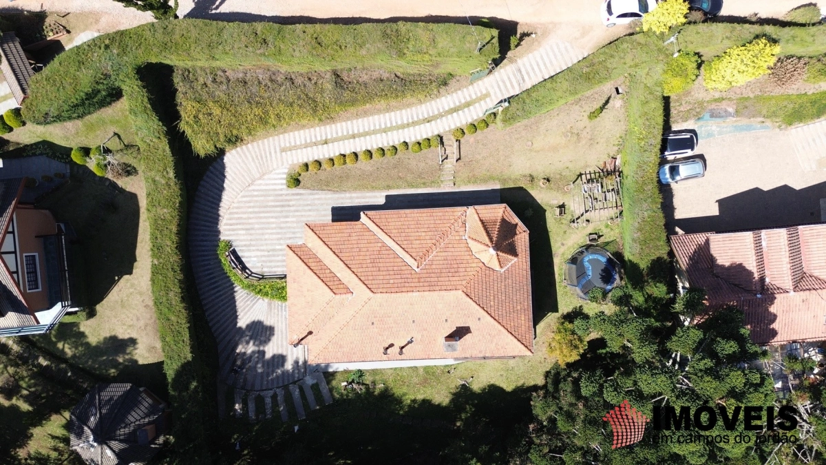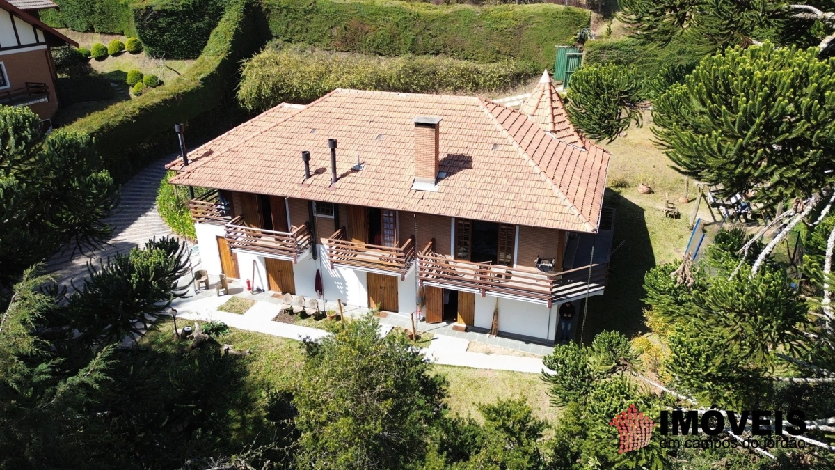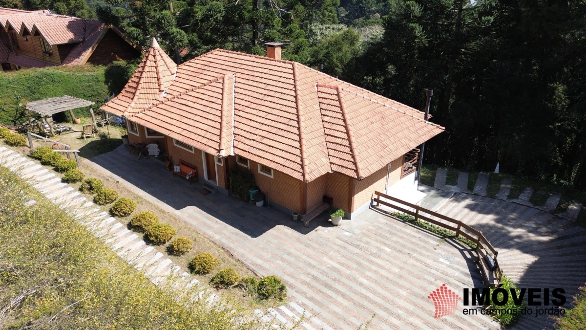 Uma residência no alto da montanha de Campos do Jordão, com acesso apenas à 500 metros do asfalto passando por mirantes que é possível ter uma vista panorâmica da cidade. Ela possui 07 dormitórios sendo 06 suítes, e 04vagas de garagem. Varandas com vista para natureza que envolve a casa.