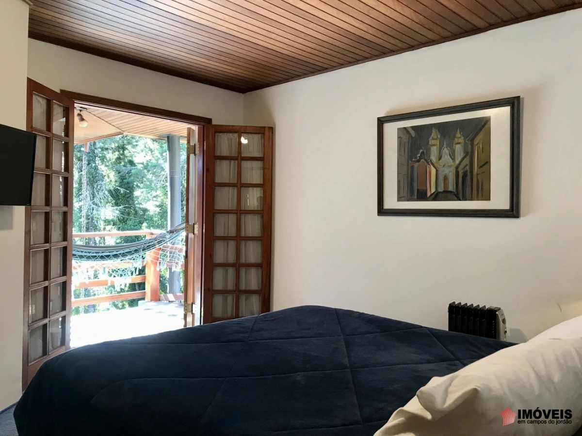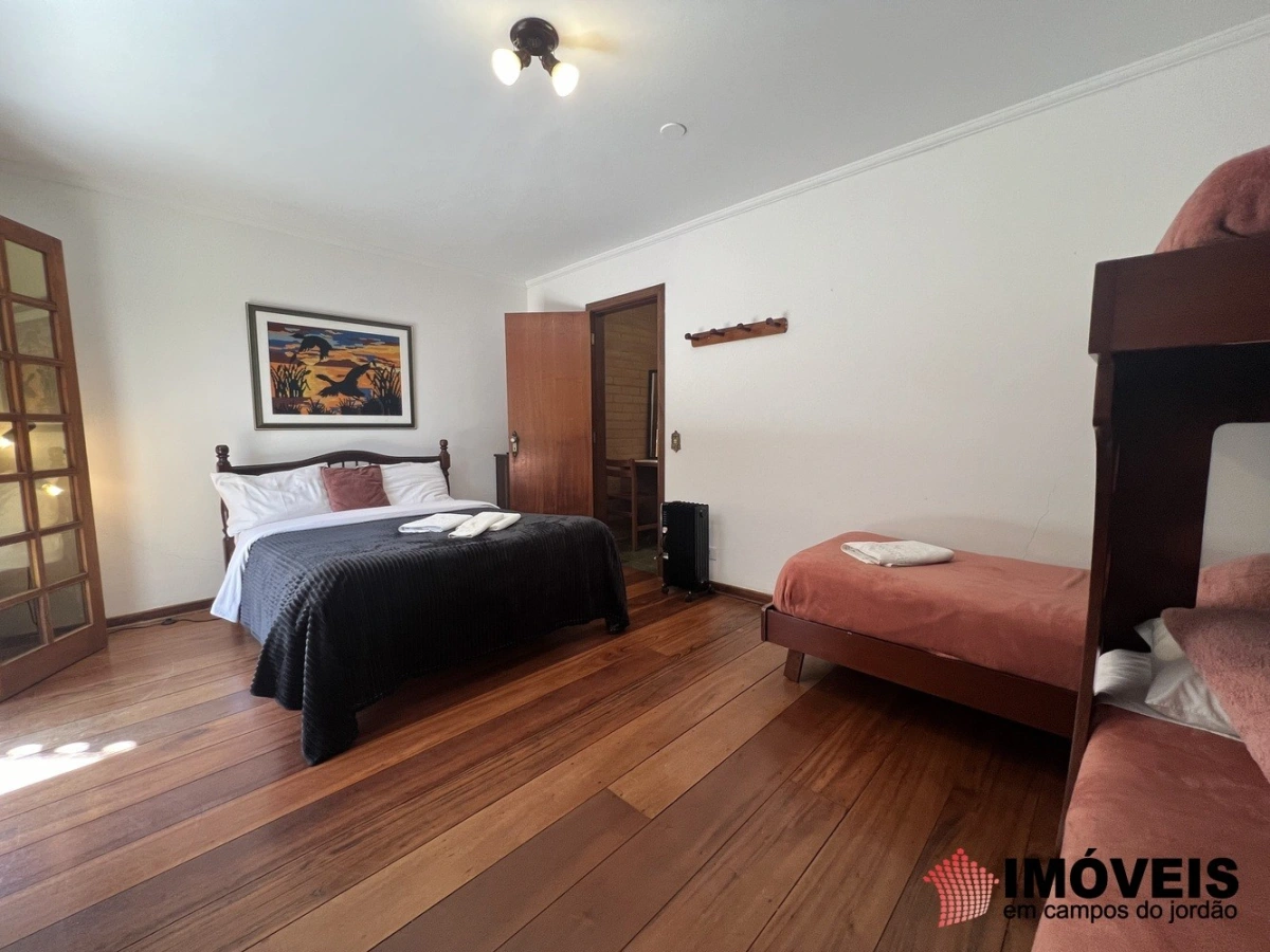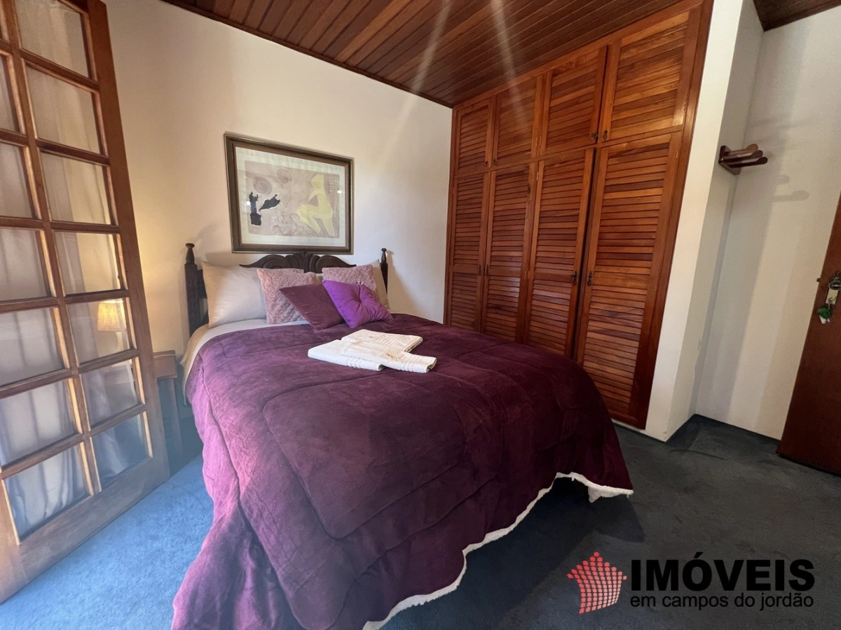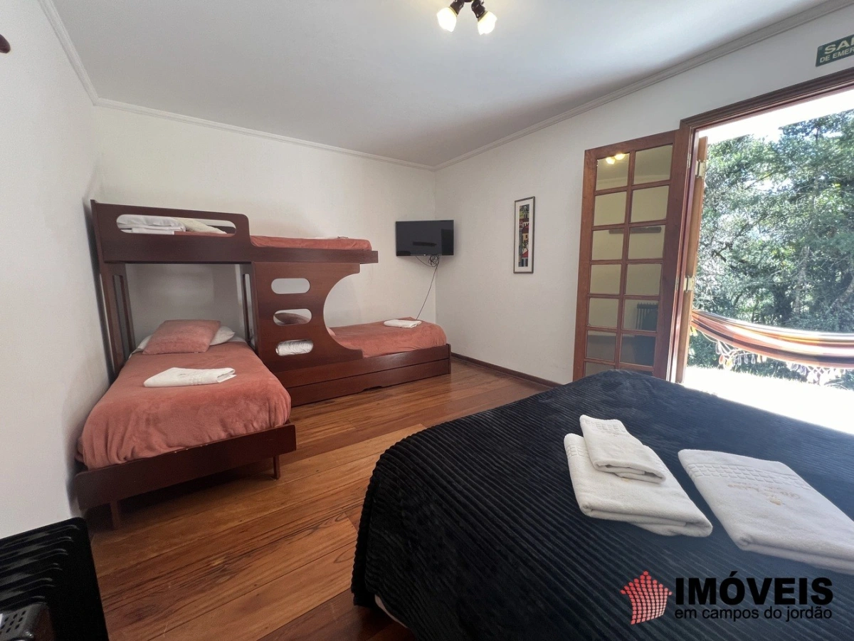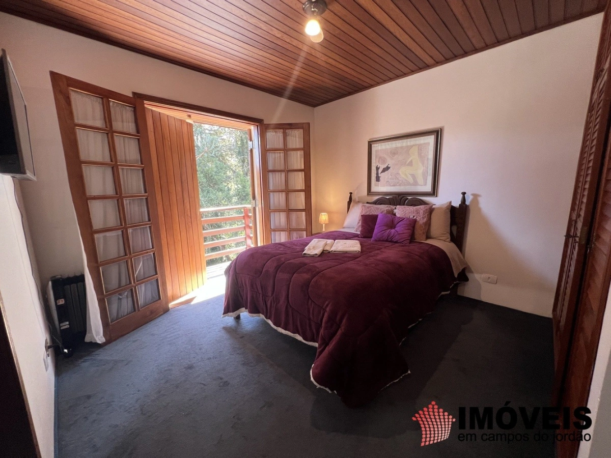 Uma residência no alto da montanha de Campos do Jordão, com acesso apenas à 500 metros do asfalto passando por mirantes que é possível ter uma vista panorâmica da cidade. Ela possui 07 dormitórios sendo 06 suítes, e 04vagas de garagem. Varandas com vista para natureza que envolve a casa.