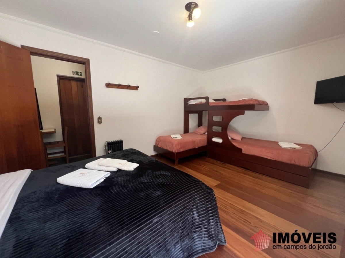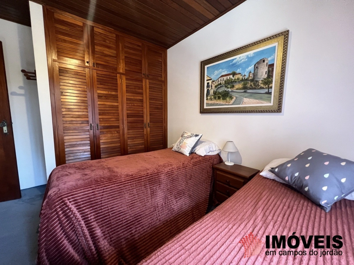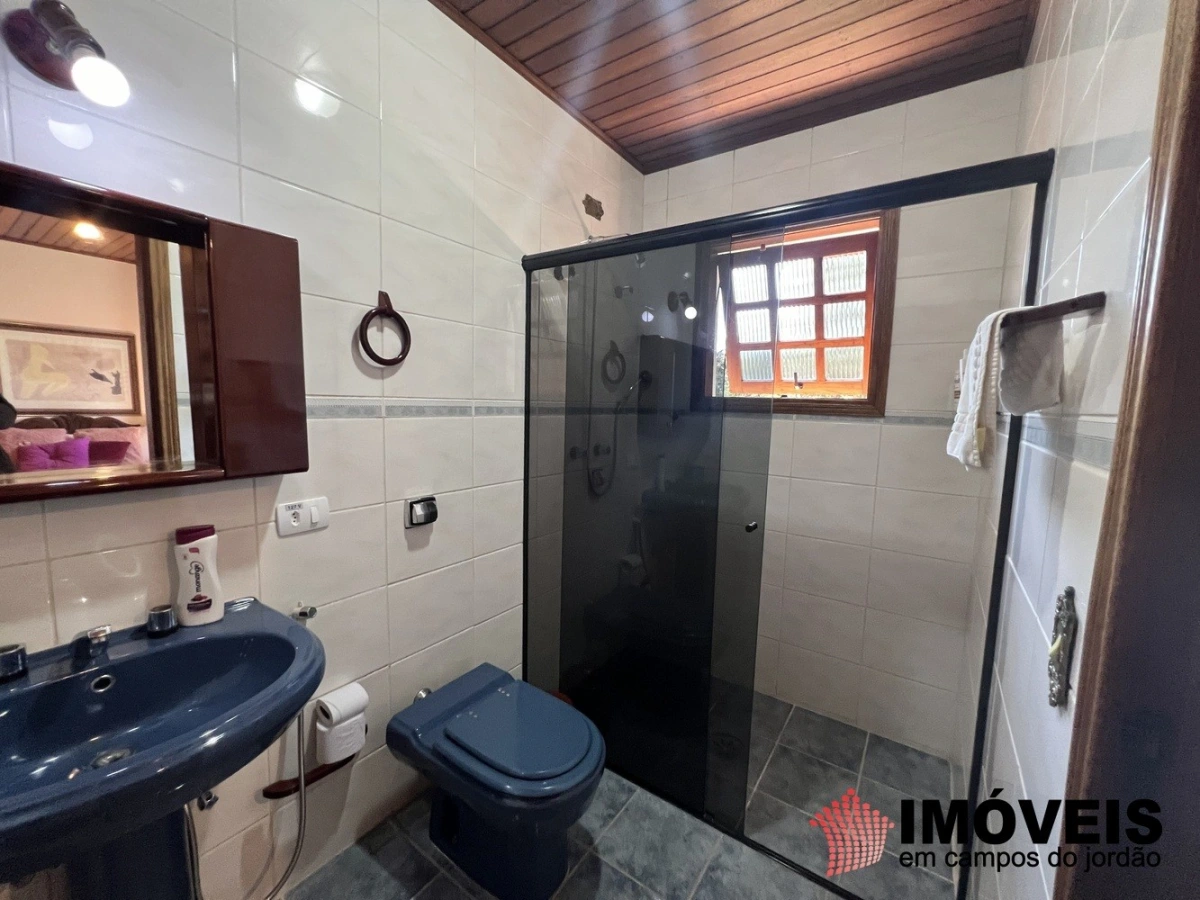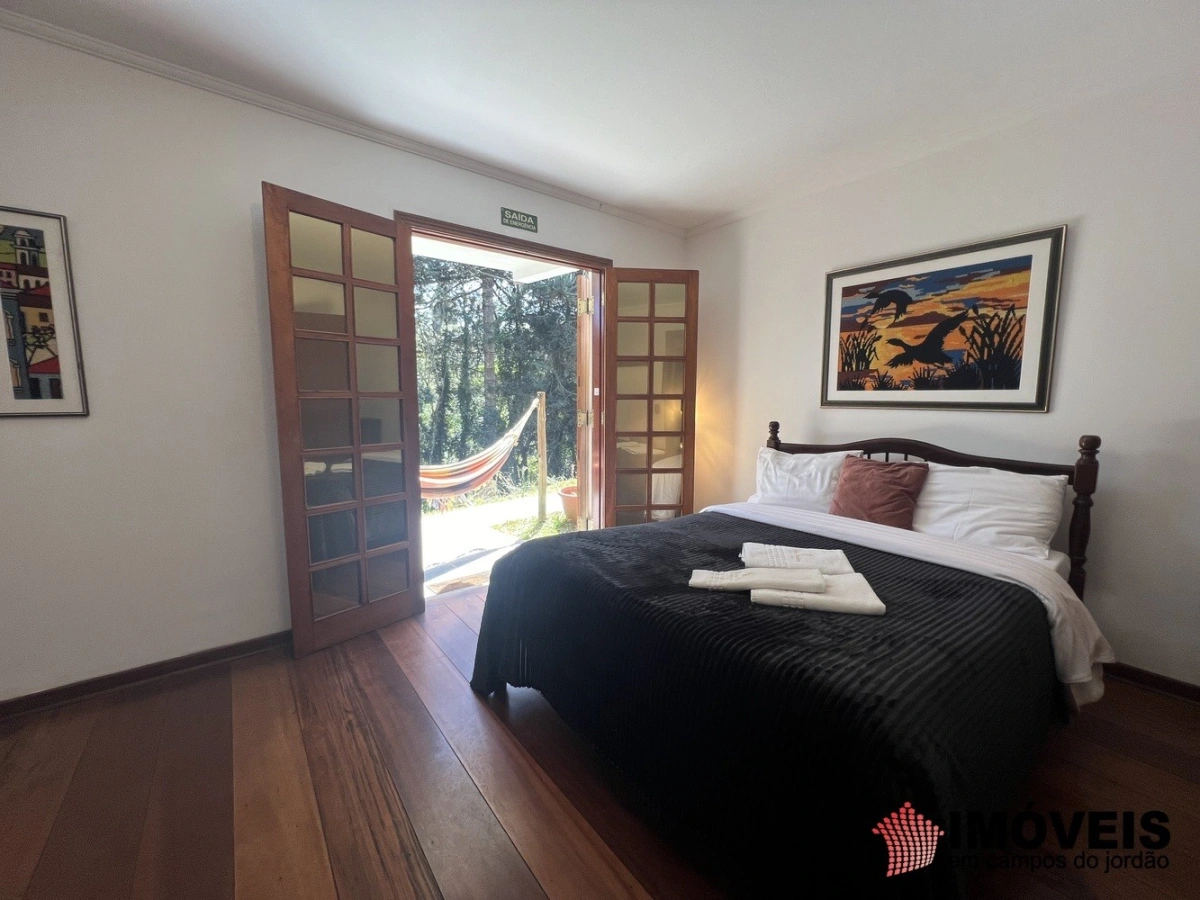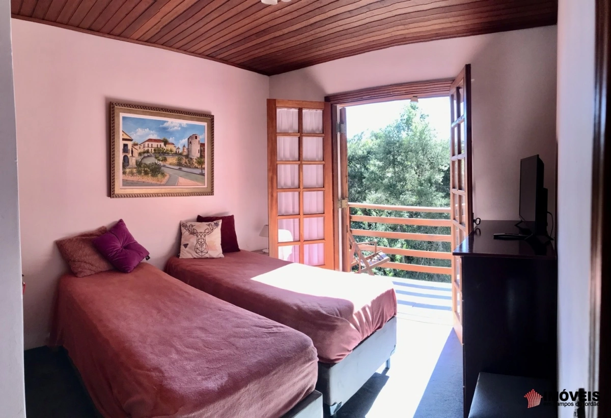 Uma residência no alto da montanha de Campos do Jordão, com acesso apenas à 500 metros do asfalto passando por mirantes que é possível ter uma vista panorâmica da cidade. Ela possui 07 dormitórios sendo 06 suítes, e 04vagas de garagem. Varandas com vista para natureza que envolve a casa.