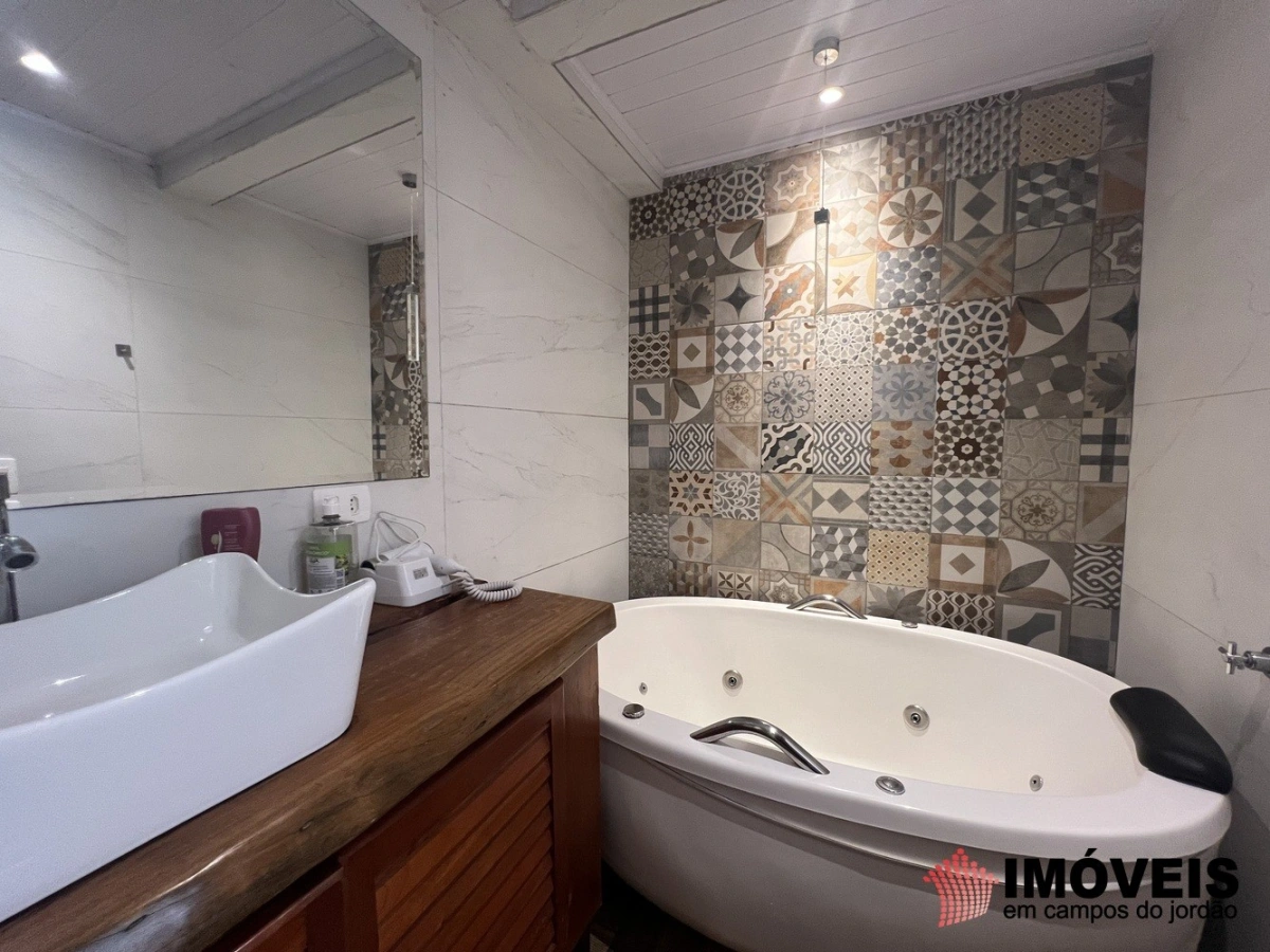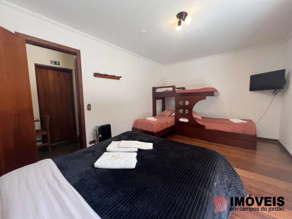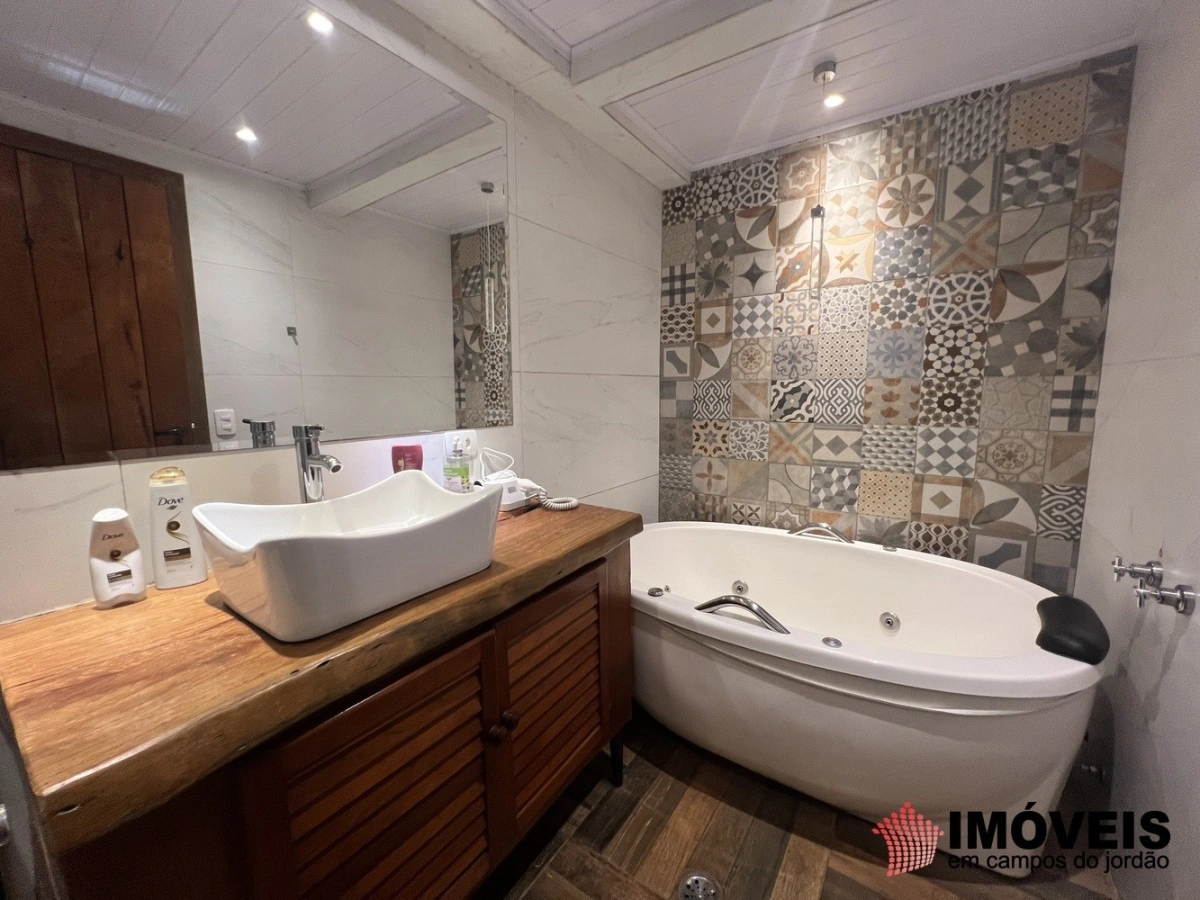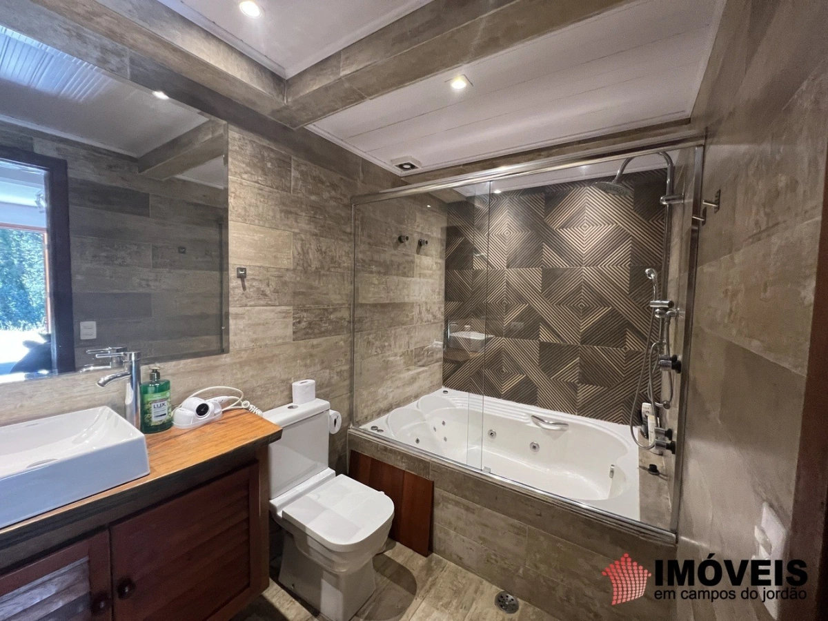 Uma residência no alto da montanha de Campos do Jordão, com acesso apenas à 500 metros do asfalto passando por mirantes que é possível ter uma vista panorâmica da cidade. Ela possui 07 dormitórios sendo 06 suítes, e 04vagas de garagem. Varandas com vista para natureza que envolve a casa.