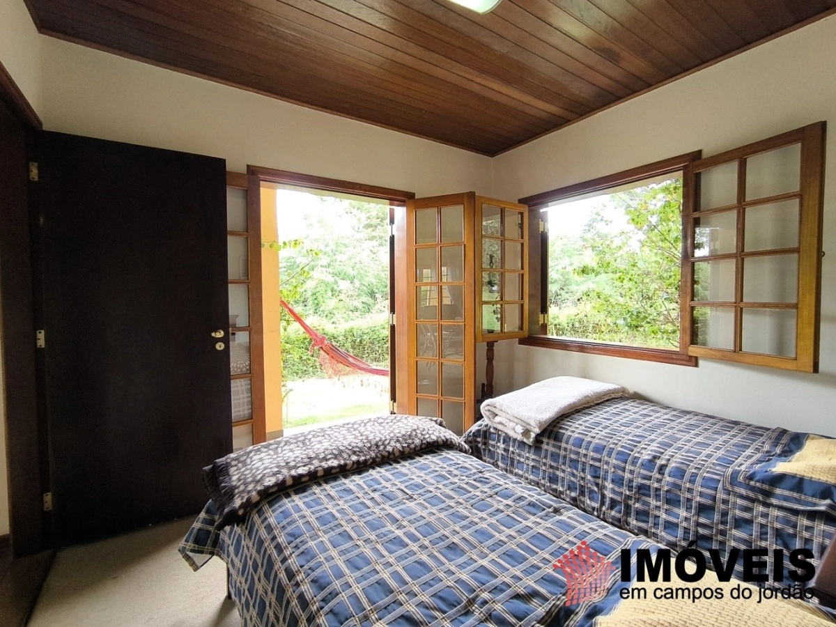 - No pavimento térreo: A quarta suíte já tem saída para o jardim onde se encontra redes para relaxar. Além de sala de lareira e espaço para carteado ao lado.