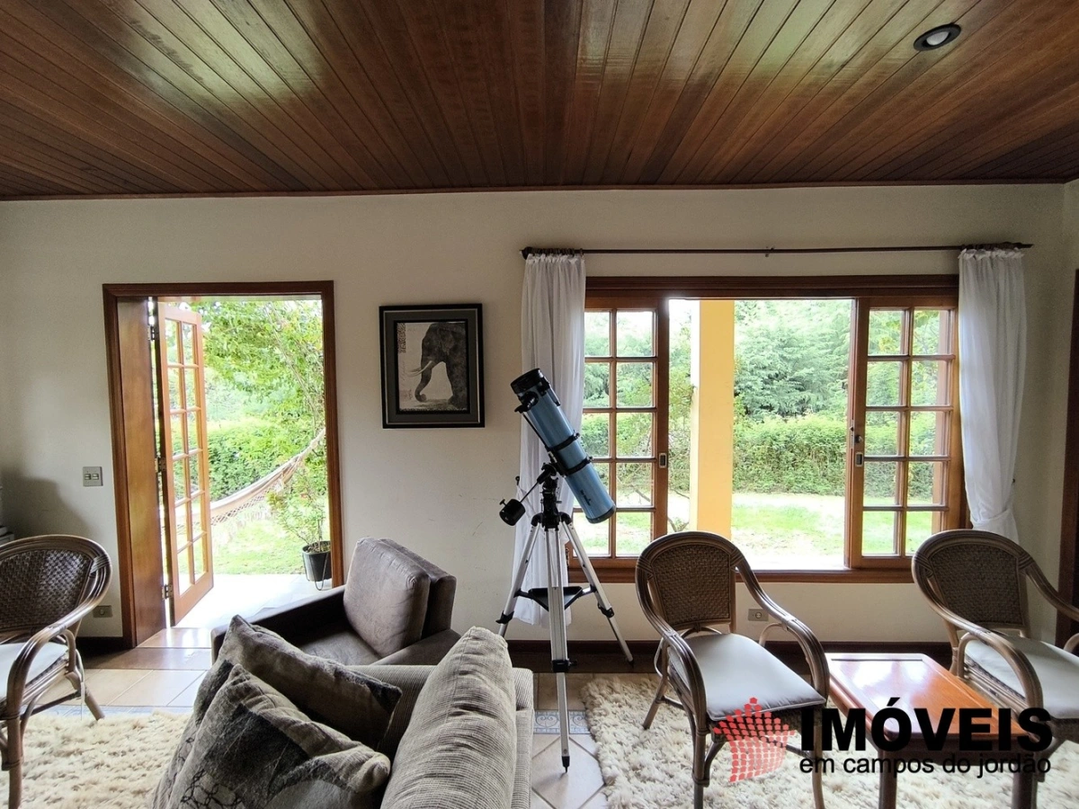 - Casa Principal: Uma construção clássica, com arquitetura refinada, que combina perfeitamente com a natureza ao redor. A residência está localizada em um local privativo, fora de condomínio, com a conveniência de uma casa de caseiros, onde as pessoas têm certeza de que o imóvel seja bem cuidado.