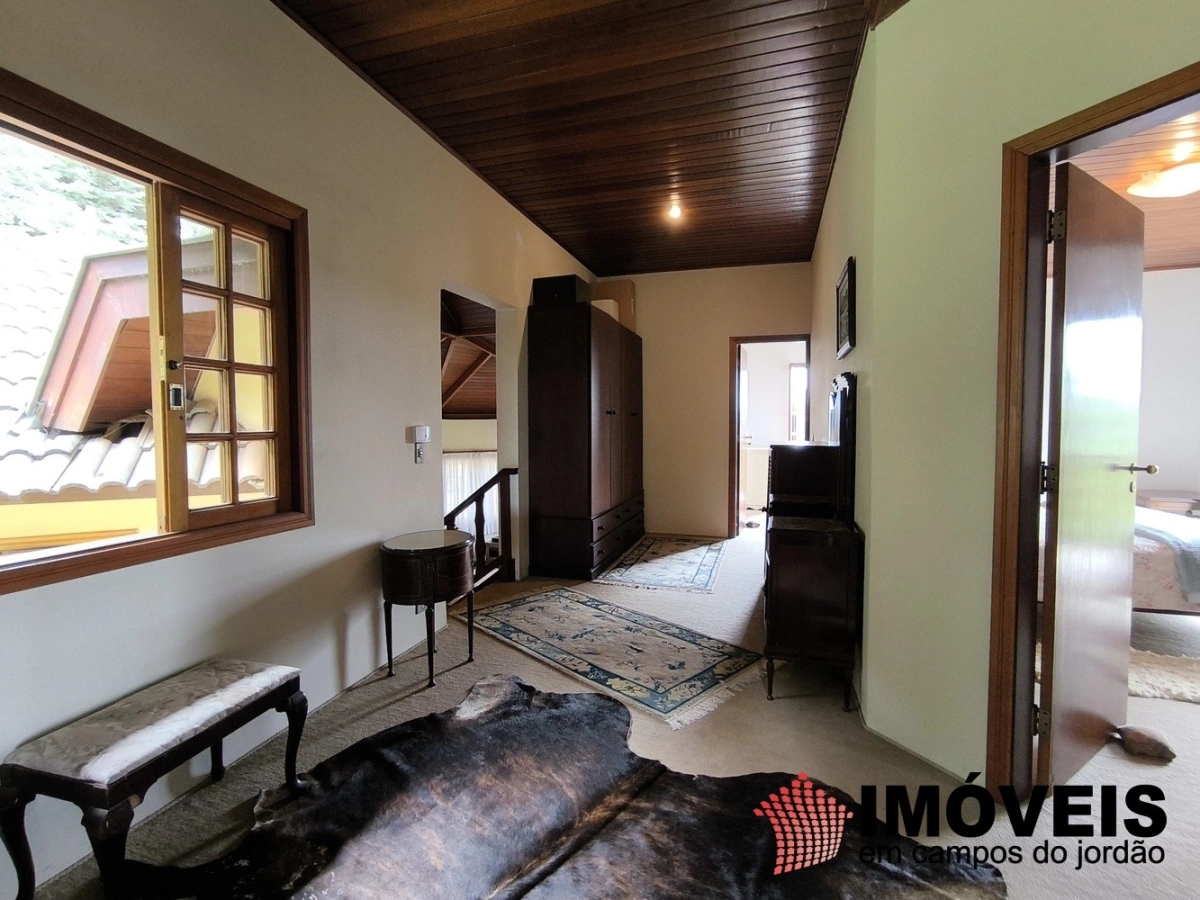 Pavimento Principal: A casa conta com uma espaçosa sala de jantar, uma sala de TV aconchegante e uma lareira com pé direito duplo, que proporciona uma sensação de amplitude e sofisticação. Há também um cantinho perfeito para leitura, com uma janela que oferece uma vista maravilhosa e uma brisa agradável.