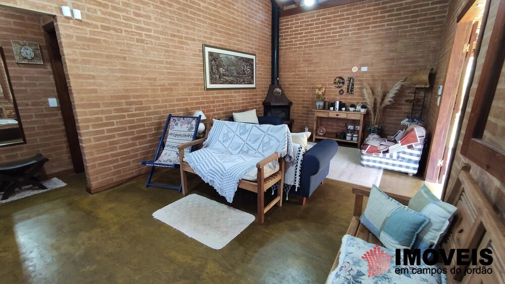 Na casa são duas suítes aconchegantes, mais um banheiro completo na área externa anexa, sala de estar com lareira dando destaque ao chão belíssimo de cimento queimado se conecta a uma cozinha completa com pranchas de madeira pura, mais uma cozinha caipira com forno á lenha com serpentina e forno industrial, toda envidraçada com linda vista, depósito de ferramentas, churrasqueira, fogo de chão, gramado e um deck esplendido.
