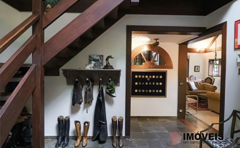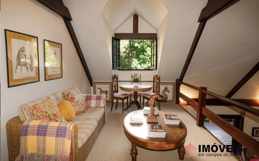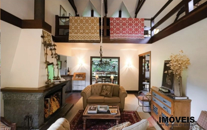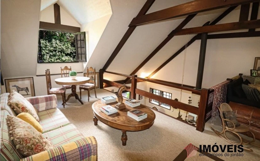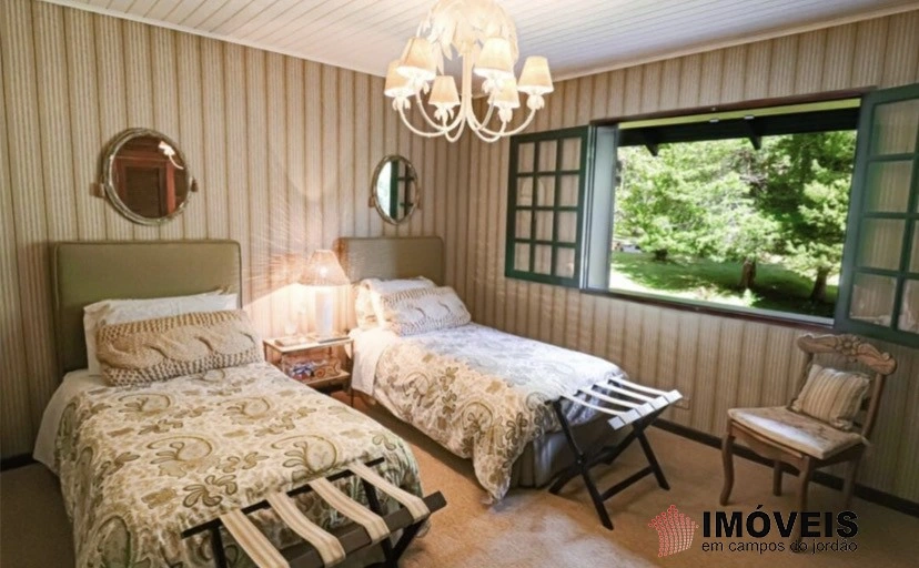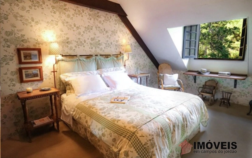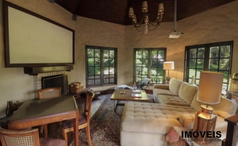 A casa principal de 450m² possuí um delicioso deck, sala de estar com lareira, sala de repouso, bar, hall de acesso, sala de jantar, cozinha, 02 suítes no piso térreo mais 02 dormitórios conjugados com 01 banheiro e lavabo. No piso superior 01 sala íntima, 02 suítes sendo uma máster com banheira de hidromassagem, lareira e terraço.