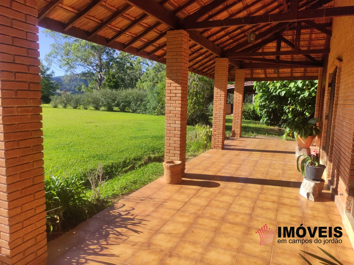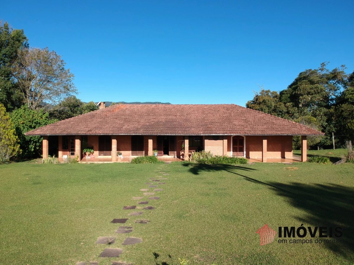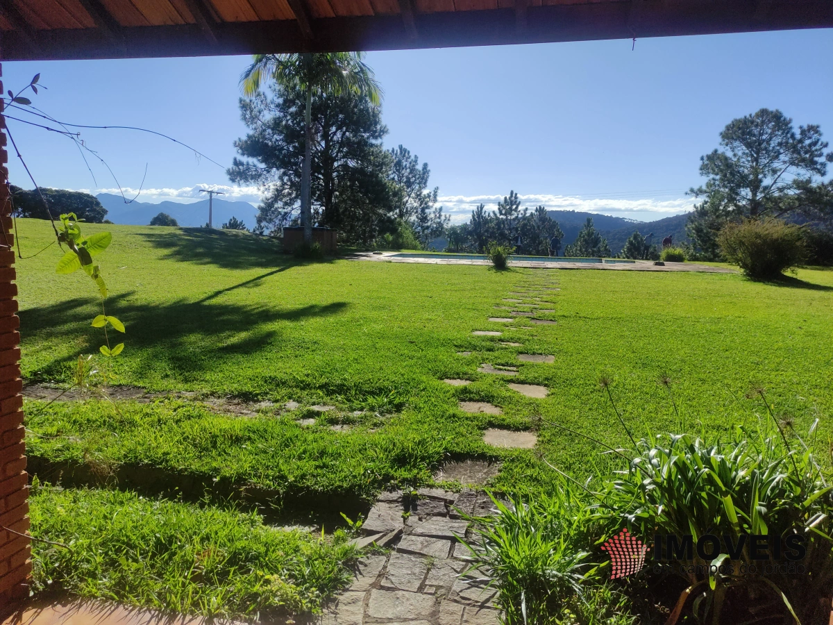 A casa principal são 04 suítes, cozinha, sala de estar com lareira, sala de jantar, varanda e entrada pavimentada com paralelepípedos.